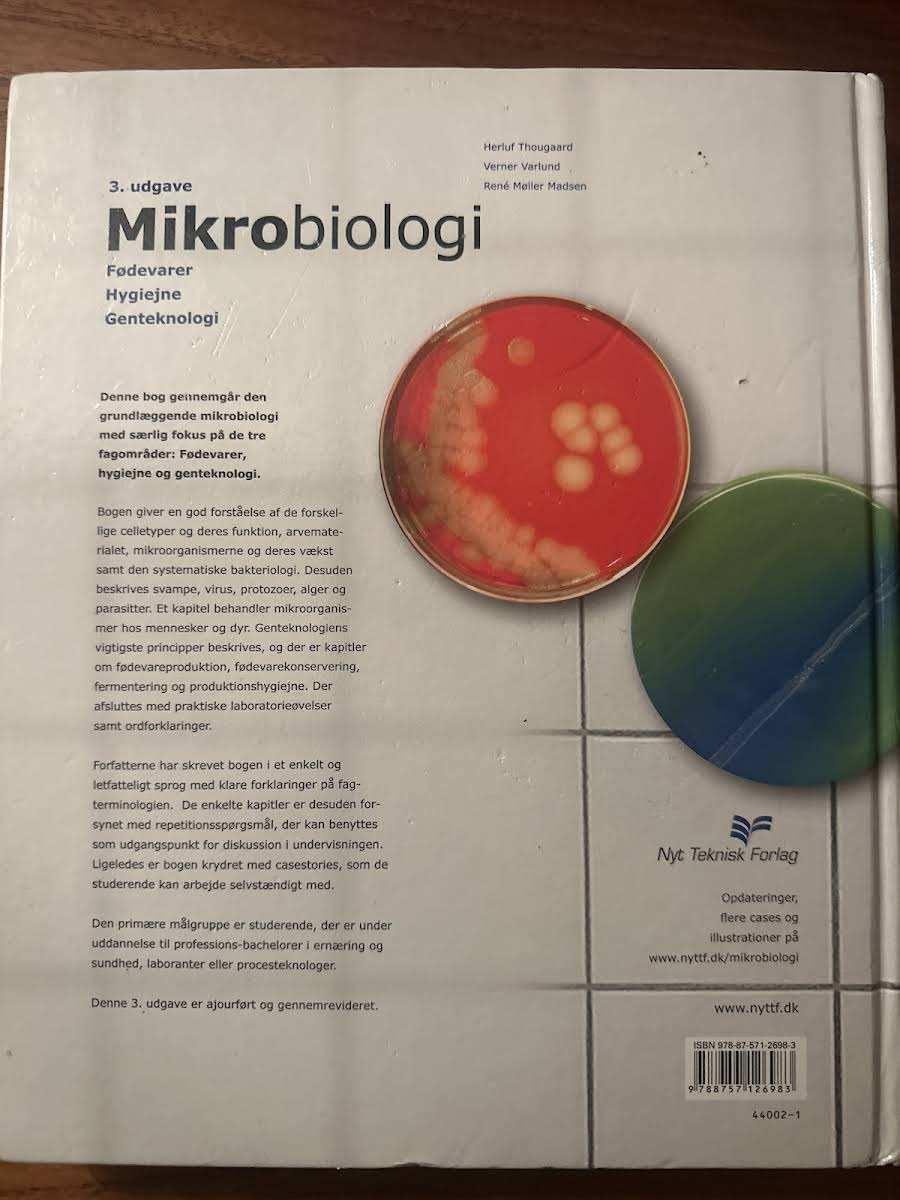 Mikrobiologi giver en grundig indføring i mikrobiologiens univers med et særligt fokus på de tre kerneområder: fødevarer, hygiejne og genteknologi. Bogen redegør tydeligt for cellernes opbygning, arvematerialets betydning og mikroorganismers vækst, og den præsenterer en systematisk indføring i bakteriologi. Desuden behandles også svampe, virus, protozoer, alger og parasitter samt mikroorganismer, der forekommer hos både mennesker og dyr. Med en klar og letforståelig fremstilling af fagterminologien supplerer bogen de teoretiske kapitler med praktiske laboratorieøvelser og relevante repetitionsspørgsmål, der inviterer til dybere diskussion og selvstændigt arbejde. Casestudier er integreret for at illustrere de praktiske anvendelser inden for fødevareproduktion, konservering, fermentering og hygiejne i produktionsmiljøer. Denne opdaterede 3. udgave er rettet mod studerende inden for ernæring og sundhed samt laboranter og procesteknologer.