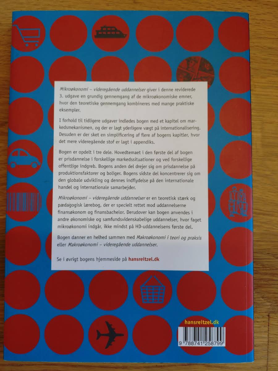 Mikroøkonomi - videregående uddannelser i 3. udgave (2015) af Hans Jørgen Biede giver en grundig gennemgang af centrale mikroøkonomiske begreber. Den teoretiske behandling suppleres af mange praktiske eksempler, der gør stoffet mere tilgængeligt. Denne udgave er gennemgående revideret, indleder med et nyt kapitel om markedsmekanismen og sætter øget fokus på internationalisering. Mere avanceret indhold er desuden flyttet til appendiks for at strømline hovedafsnittene. Bogen er opdelt i tre dele, hvor den første behandler prisdannelse på forskellige markedstyper og ved offentlige indgreb. Anden del undersøger prisdannelse på produktionsfaktorer og boligmarkedet. Tredje del fokuserer på globale tendenser og deres indflydelse på international handel og samarbejde. Mikroøkonomi kombinerer en solid teoretisk fundament med en pædagogisk tilgang og henvender sig til videregående uddannelser på professionsbachelor-, KVU- og HD-niveau inden for markedsføring, finansøkonomi og nationaløkonomi. Til bogen hører en hjemmeside med figurer til download, opgaver og rettelser.