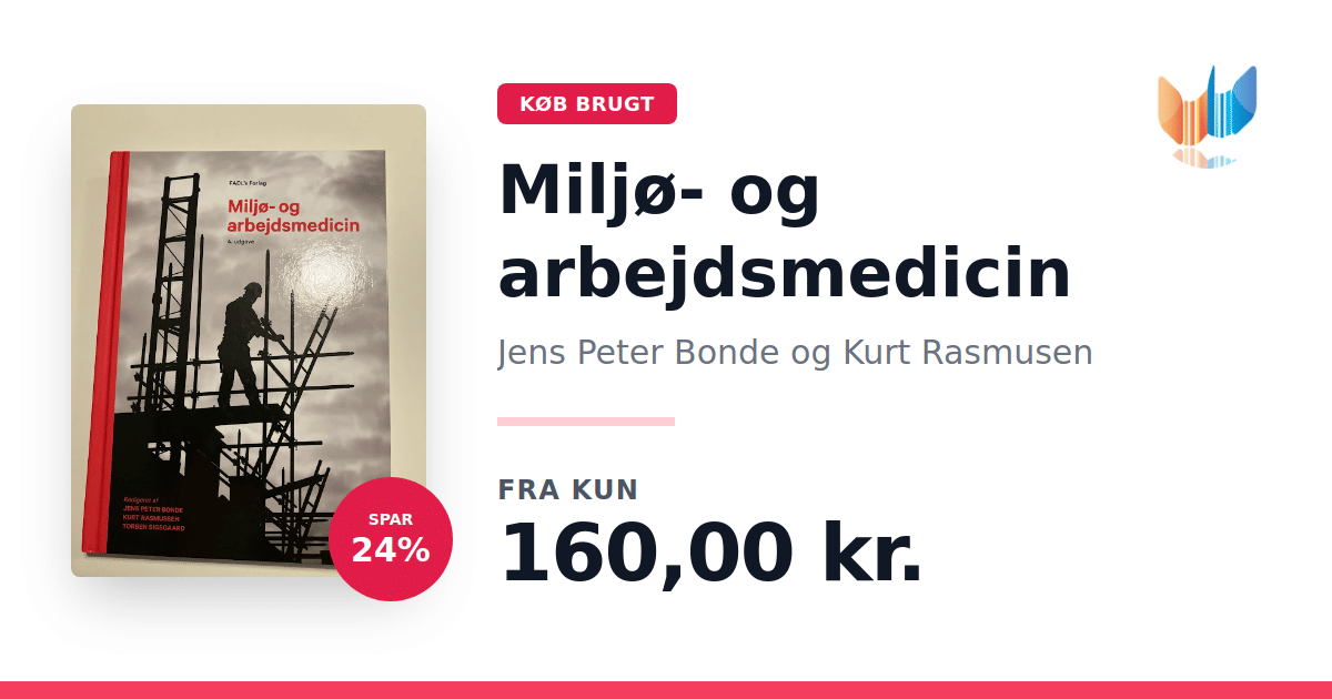 Lige nu kan du købe "Miljø- og arbejdsmedicin" af Jens Peter Bonde og Kurt Rasmusen til kun 160,00 kr. Du sparer hele 24% af nyprisen! Bogen du ser her er brugt, og i perfekt stand. Vi har i øjeblikket 3 eksemplarer til salg af "Miljø- og arbejdsmedicin", så husk at se de forskellige udgaver.