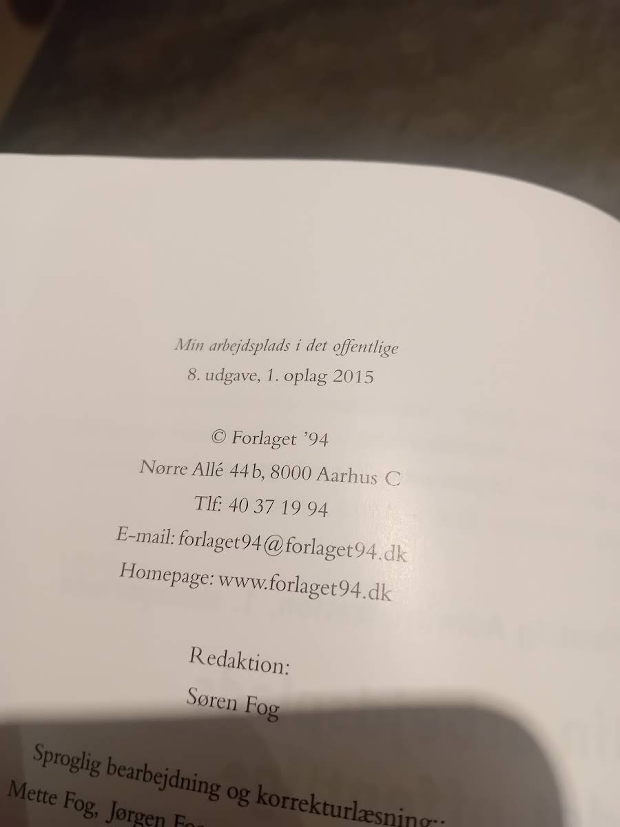 "Min arbejdsplads i det offentlige" er en udgivelse fra Forlaget '94, der fokuserer på offentlig administration.