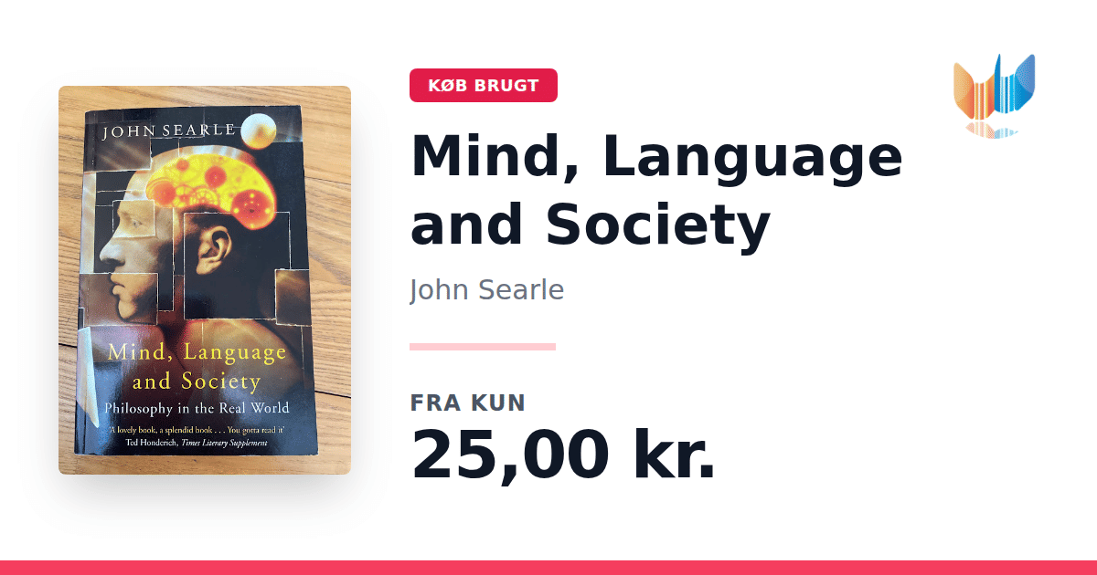 Lige nu kan du købe "Mind, Language and Society" af John Searle til kun 25,00 kr. Bogen du ser her er brugt, og i perfekt stand. Vi har i øjeblikket kun et enkelt eksemplar til salg af "Mind, Language and Society", så slå til mens du kan!