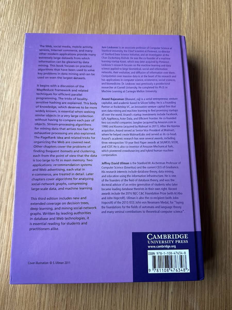 • Mining of Massive Datasets, Jure Leskovec, Anand Rajaraman, Jeffrey David Ullman, 9781108476348