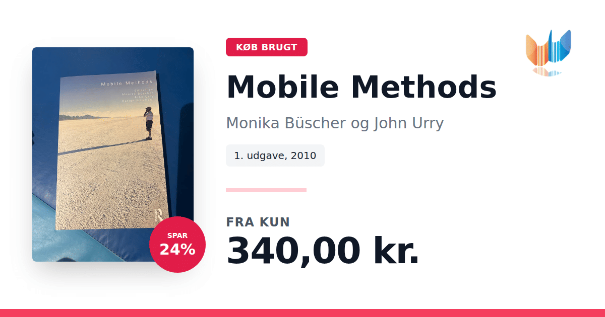 Lige nu kan du købe "Mobile Methods" af Monika Büscher og John Urry til kun 340,00 kr. Du sparer hele 24% af nyprisen! Bogen du ser her er brugt, og i perfekt stand. Vi har i øjeblikket kun et enkelt eksemplar til salg af "Mobile Methods", så slå til mens du kan!