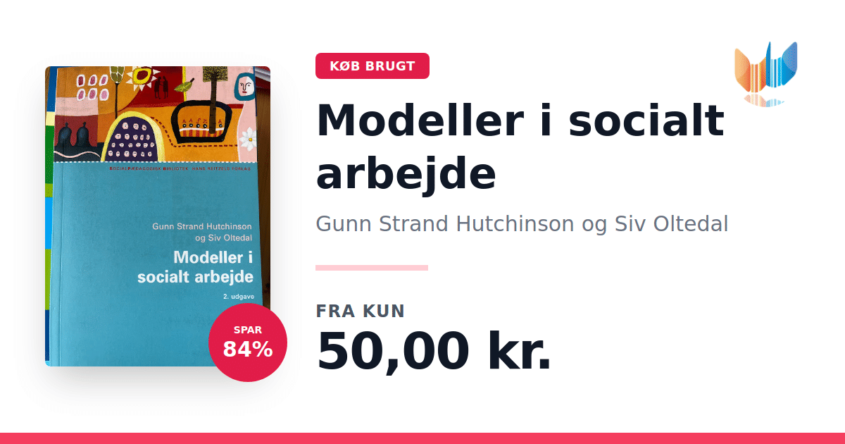 Lige nu kan du købe "Modeller i socialt arbejde" af Gunn Strand Hutchinson og Siv Oltedal til kun 50,00 kr. Du sparer hele 84% af nyprisen! Bogen du ser her er brugt, og i perfekt stand. Vi har i øjeblikket 5 eksemplarer til salg af "Modeller i socialt arbejde", så husk at se de forskellige udgaver.