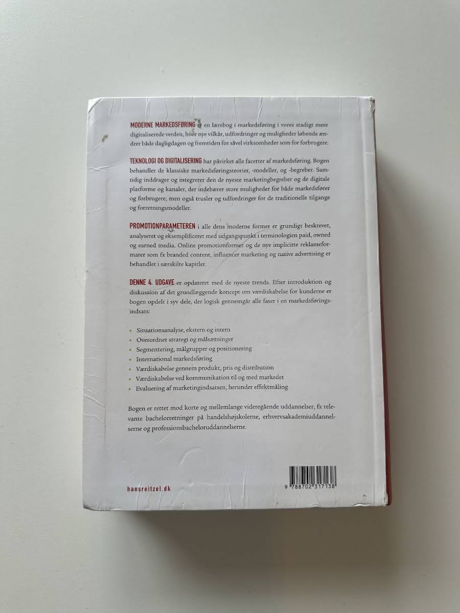 MODERNE MARKEDSFØRING er en omfattende lærebog, der belyser markedsføringens udvikling i en digitaliseret tidsalder, hvor teknologiske fremskridt og nye digitale platforme ændrer betingelserne for både virksomheder og forbrugere. Bogen præsenterer de klassiske markedsføringsteorier og -modeller, samtidig med at den inddrager de nyeste digitale strategier og begreber, der former nutidens marked. Med fokus på både traditionelle og moderne tilgange gennemgår værket markedets mange facetter, herunder strategisk planlægning, segmentering og positionering samt de forskellige online promotionformer. Diskussionen om paid, owned og earned media suppleret med eksempler på branded content, influencer marketing og native advertising giver læseren en dybdegående forståelse af, hvordan digitale kanaler kan integreres i en overordnet markedsføringsstrategi. Efter en grundig introduktion til værdiskabelsen for kunderne opdeler bogen emnet i logiske faser, der dækker alt fra situationsanalyse og målsætninger til implementering og evaluering af marketingindsatsen. Denne strukturerede tilgang gør den ideel til studerende på korte og mellemlange videregående uddannelser, særlig inden for bachelor- og professionsbachelorprogrammer på handelshøjskoler og erhvervsakademier.