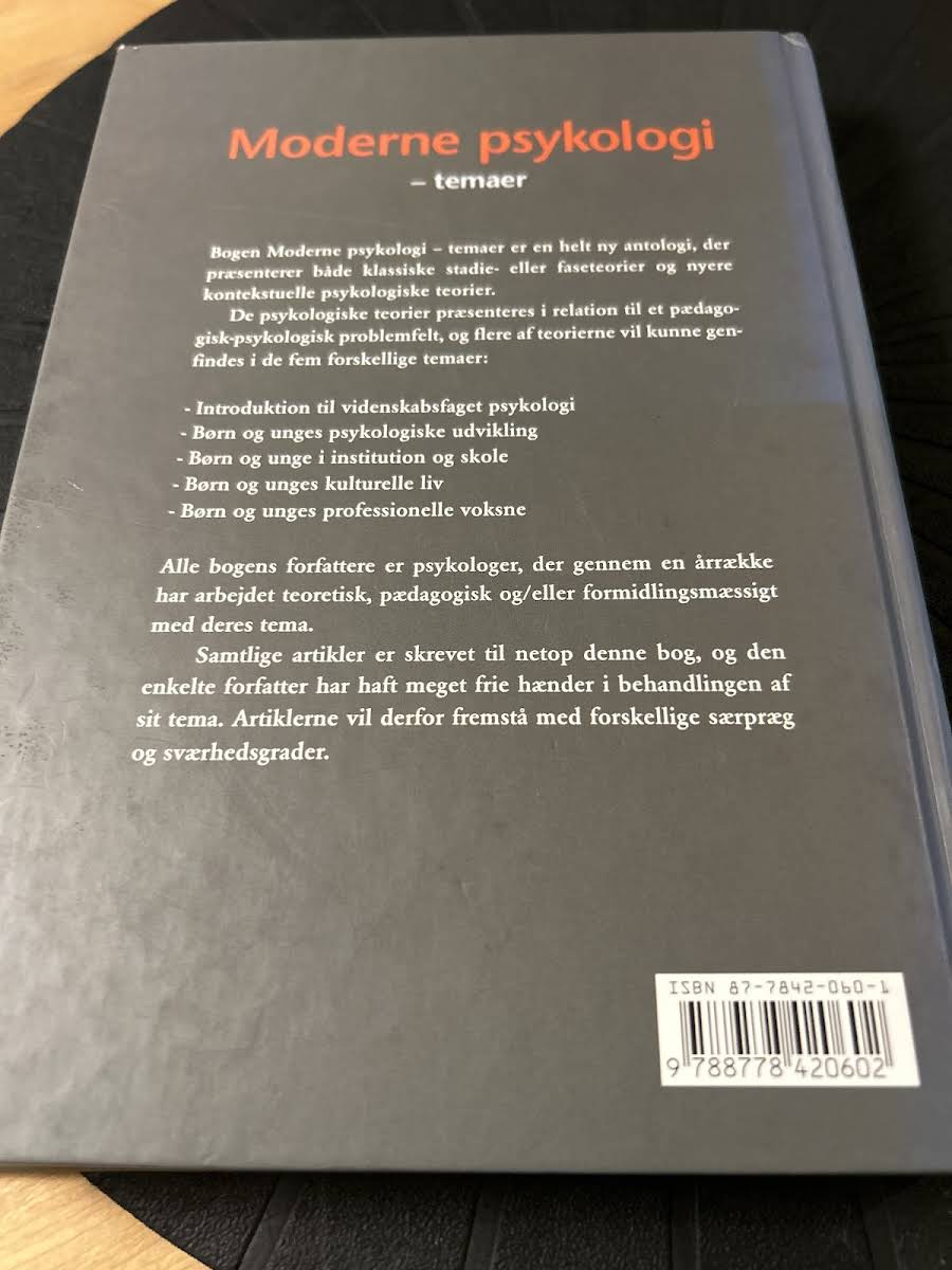 "Moderne psykologi – temaer" byder på en alsidig samling af undervisningstekster, der belyser psykologiens mange perspektiver. Bogen præsenterer både klassiske faseteorier og nyere kontekstuelle tilgange, hvor hvert essay bidrager med sin unikke vinkel på, hvordan komplekse problemstillinger kan forstås gennem flere teoretiske linser. I denne første udgave fra 2001, udgivet af Billesø & Baltzer, mødes læseren af tekster med forskellig grad af kompleksitet, der tilsammen åbner op for en nuanceret og dynamisk tilgang til forståelsen af psykologiske fænomener. Bogen er et solidt redskab for studerende og fagfolk, der ønsker at udforske, hvordan teori og praksis kan supplere hinanden i mødet med menneskelig udvikling og læring.