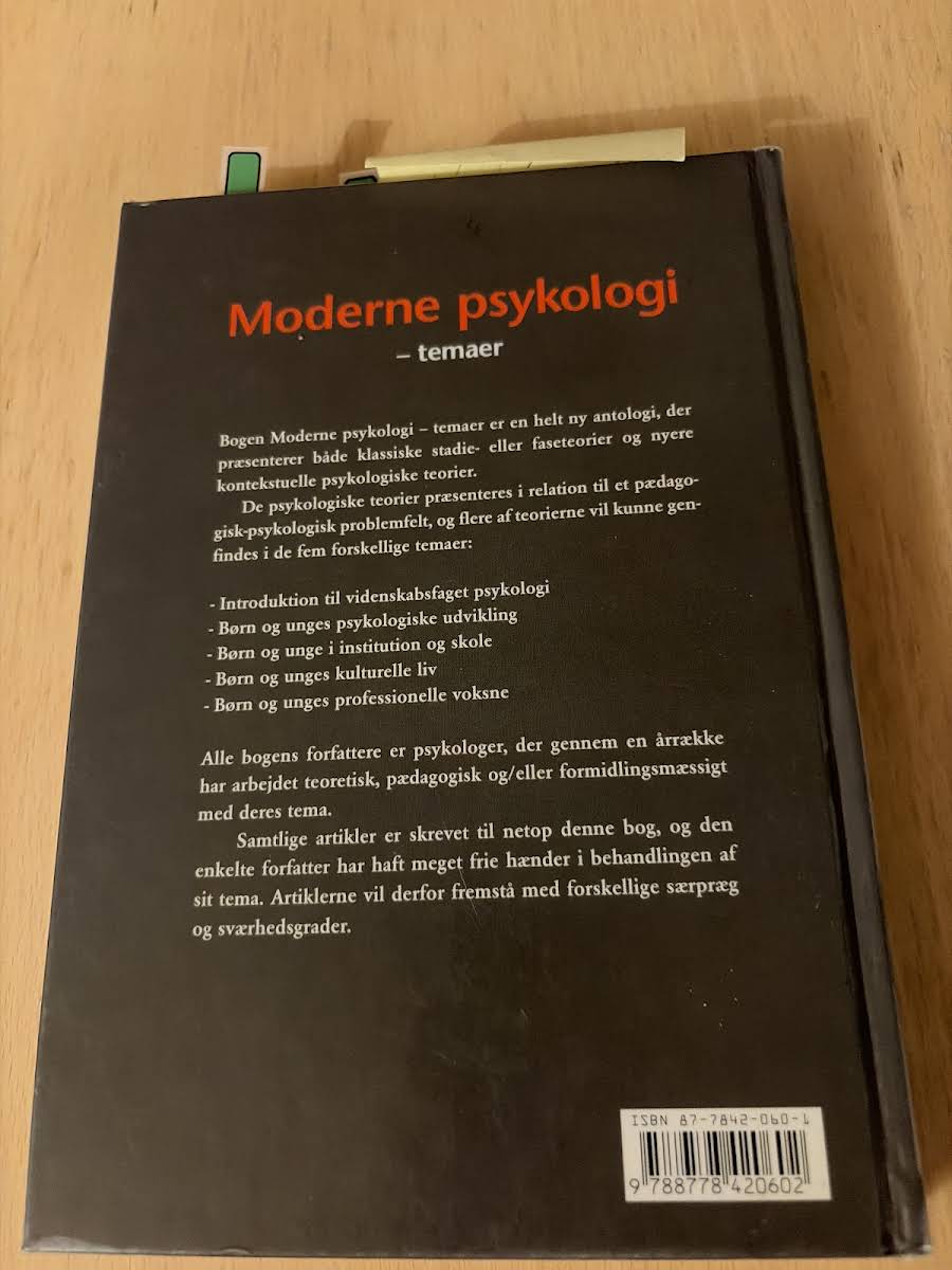 "Moderne psykologi – temaer" byder på en alsidig samling af undervisningstekster, der belyser psykologiens mange perspektiver. Bogen præsenterer både klassiske faseteorier og nyere kontekstuelle tilgange, hvor hvert essay bidrager med sin unikke vinkel på, hvordan komplekse problemstillinger kan forstås gennem flere teoretiske linser. I denne første udgave fra 2001, udgivet af Billesø & Baltzer, mødes læseren af tekster med forskellig grad af kompleksitet, der tilsammen åbner op for en nuanceret og dynamisk tilgang til forståelsen af psykologiske fænomener. Bogen er et solidt redskab for studerende og fagfolk, der ønsker at udforske, hvordan teori og praksis kan supplere hinanden i mødet med menneskelig udvikling og læring.