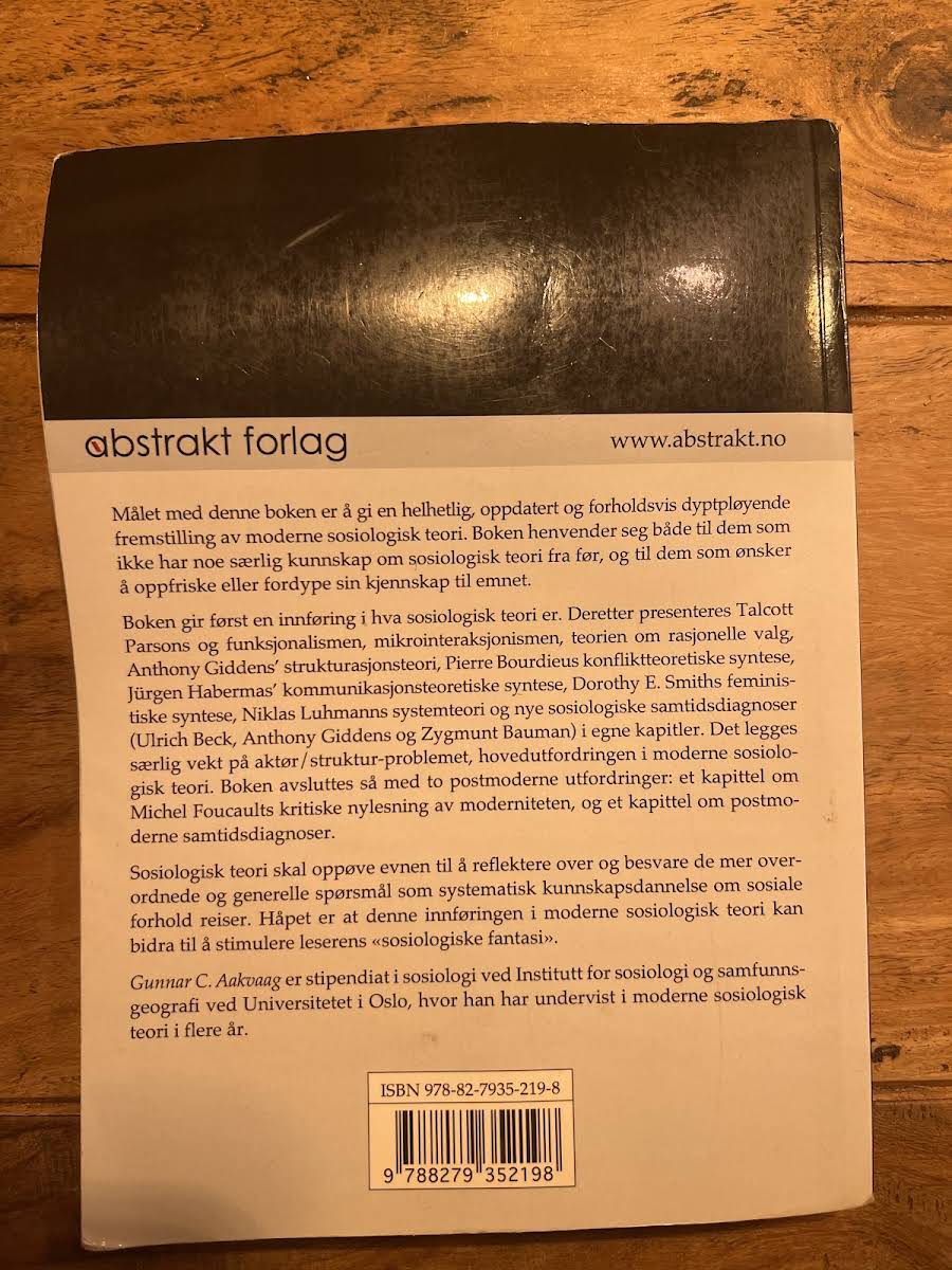 • Moderne sosiologisk teori, Gunnar C. Aakvaag, 9788279352198