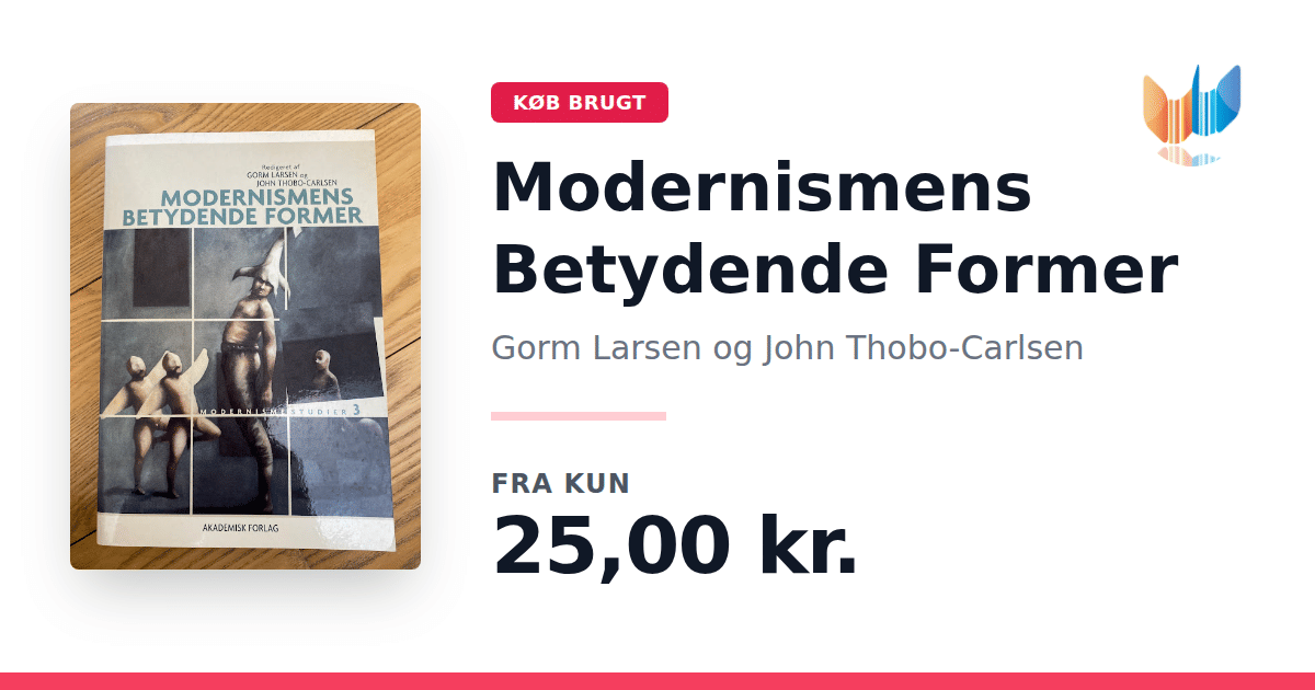 Lige nu kan du købe "Modernismens Betydende Former" af Gorm Larsen og John Thobo-Carlsen til kun 25,00 kr. Bogen du ser her er brugt, og i perfekt stand. Vi har i øjeblikket kun et enkelt eksemplar til salg af "Modernismens Betydende Former", så slå til mens du kan!