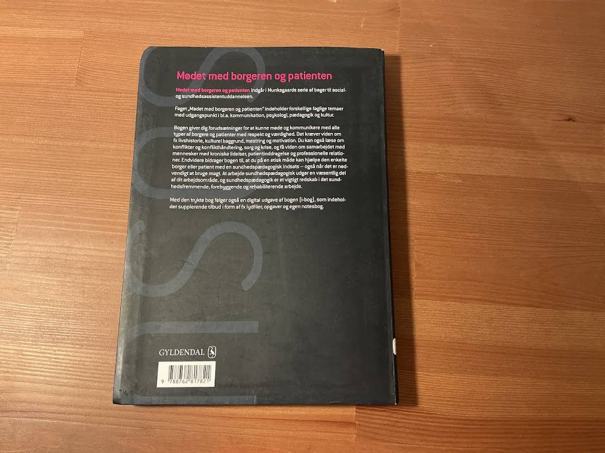 • Mødet med borgeren og patienten (SSA) (med iBog), Bente Søndergaard, Kirsten Halskov Madsen, Anja Semke, Henrik Wiben, Birgitte Gøtzsche, Jean Hagstrøm, Anne-Lisbeth Pedersen, Britta Fuhlendorff, Anna C. Engers, Metha Frøjk, 9788762817821