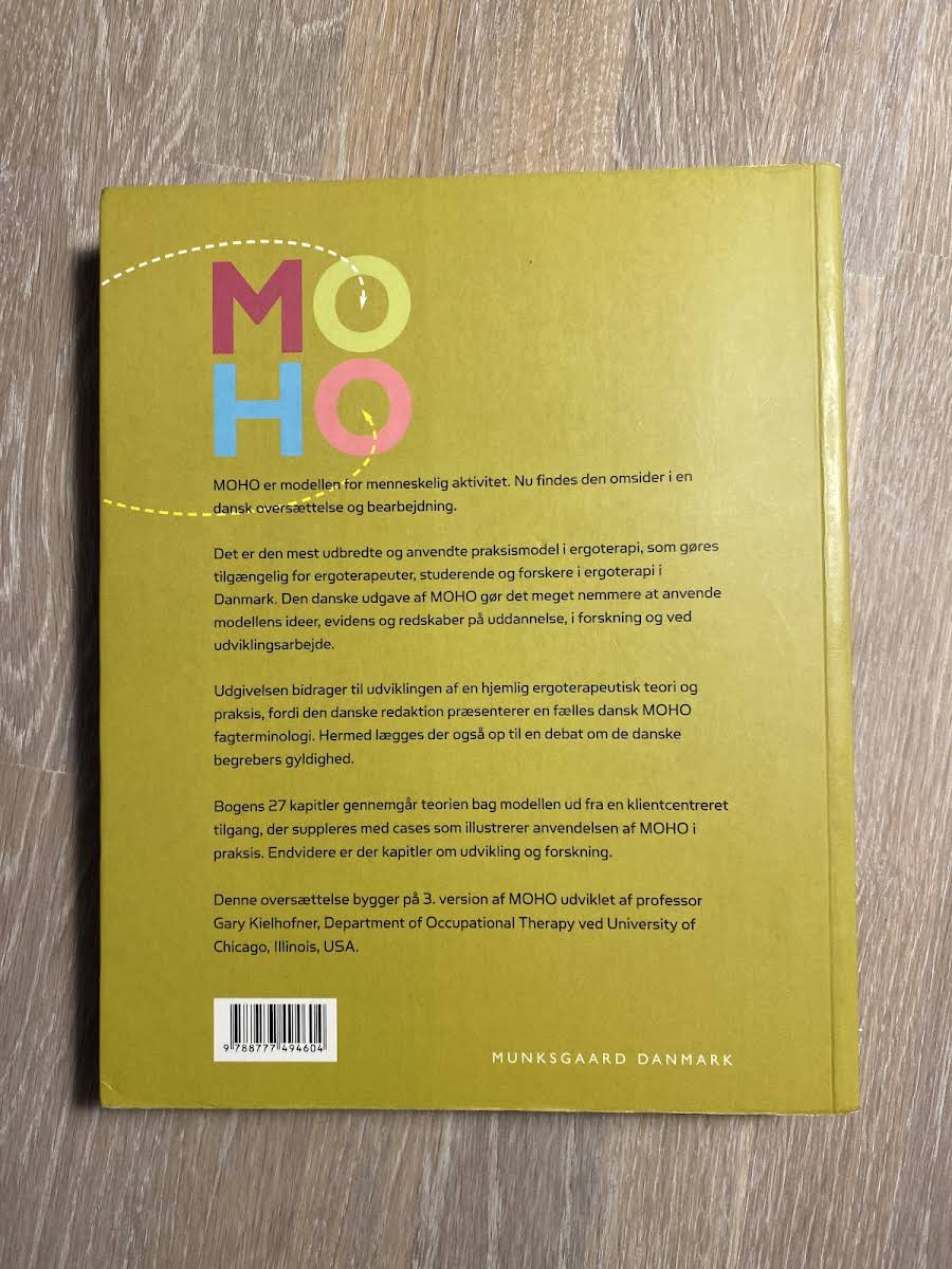 MOHO er en banebrydende model for forståelse af menneskelig aktivitet, nu præsenteret på dansk gennem en grundig oversættelse og tilpasning. Bogen rummer den mest anvendte praksismodel i ergoterapi og gør de centrale ideer, evidens og redskaber tilgængelige for ergoterapeuter, studerende og forskere i Danmark. Den danske udgave understøtter udviklingen af en fælles fagterminologi og fremmer diskussionen om de anvendte ergoterapeutiske begreber. Med sine 27 kapitler dykker MOHO ned i teorien bag en klientcentreret tilgang, som underbygges af illustrative cases fra praksis. Yderligere kapitler fokuserer på både udvikling og forskning, hvilket giver læseren et solidt værktøj til videre faglig fordybelse. Bogen, baseret på den tredje udgave af MOHO udviklet af professor Gary Kielhofner fra University of Chicago, tilbyder en moderne og inspirerende tilgang til praktisk ergoterapi.
