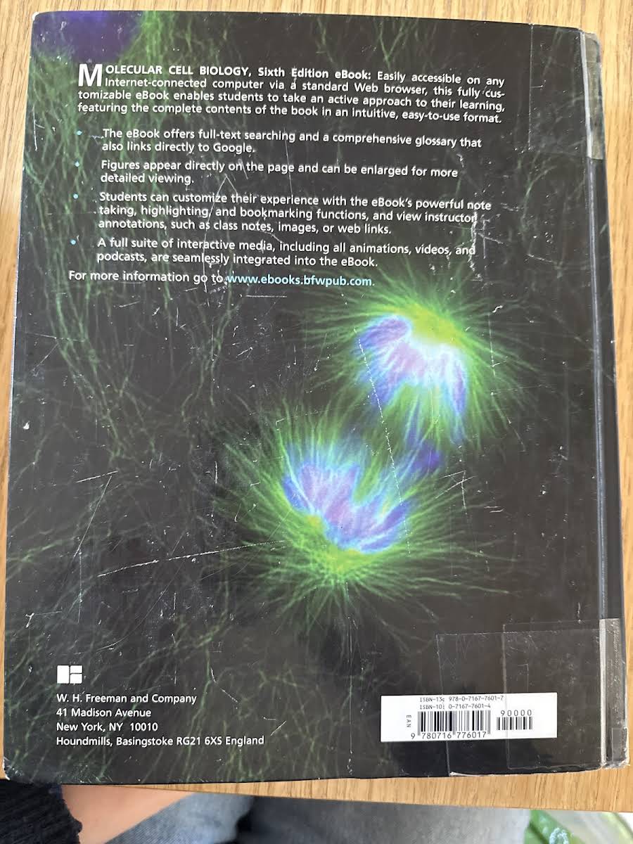 • Molecular Cell Biology, Lodish, Berk, Kaiser, Krieger, Scott, Bretscher, Ploegh, Matsudaira, 9780716776017