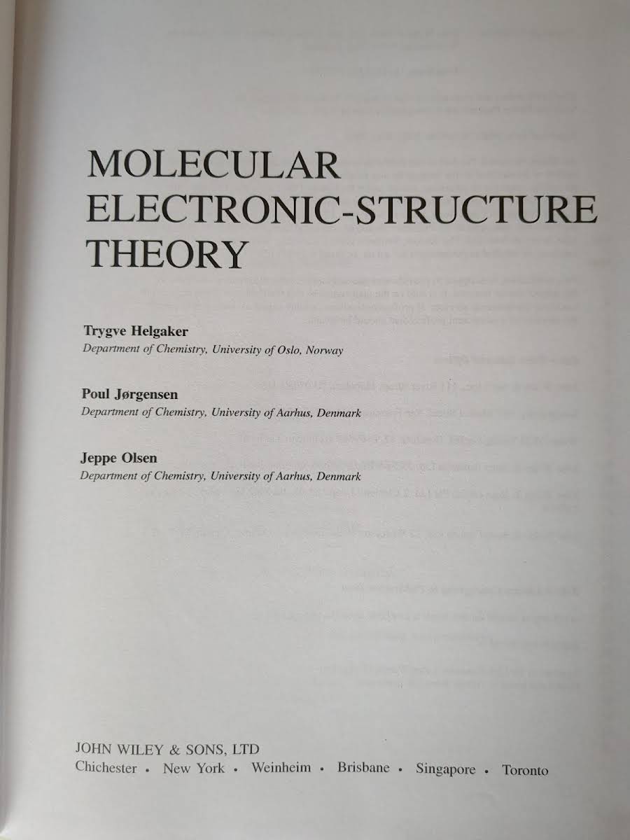 • Molecular Electronic-Structure Theory, Trygve Helgaker, Poul Jorgensen, Jeppe Olsen, 9780471967552