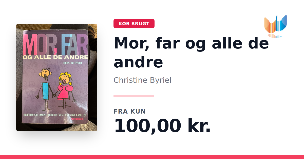 Lige nu kan du købe "Mor, far og alle de andre" af Christine Byriel til kun 100,00 kr. Bogen du ser her er brugt, og i god stand. Vi har i øjeblikket kun et enkelt eksemplar til salg af "Mor, far og alle de andre", så slå til mens du kan!