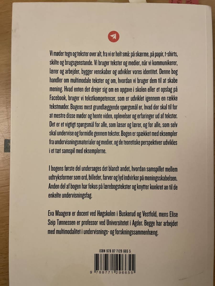 Træd ind i en verden, hvor multimodale tekster spiller en central rolle i vores dagligdag. I "Multimodal tekstkompetence" undersøges det, hvordan vi gennem en kombination af ord, billeder, farver og lyd skaber mening og formidler budskaber. Bogen sætter fokus på, hvordan med forskellige udtryksformer opstår en dynamisk kommunikation, der strækker sig fra klassiske lærebogstekster til de moderne digitale platforme, vi ofte benytter. Med udgangspunkt i konkrete eksempler fra undervisningsmaterialer og medieproduktioner giver Eva Maagerø og Elise Sleip Tønnesen læseren indblik i, hvordan multimodalitet fungerer i praksis. Gennem teoretiske perspektiver og praktiske cases bliver det tydeligt, hvordan vi kontinuerligt udvikler vores tekstkompetencer, uanset om vi arbejder, lærer eller kommunikerer i hverdagen. Bogen retter sig mod alle, der ønsker at forstå og mestre de skiftende textmøder i vores moderne medielandskab. Med en solid faglig forankring og dybdegående analyser er "Multimodal tekstkompetence" et væsentligt redskab for både studerende, undervisere og alle andre, der beskæftiger sig med formidling af komplekse budskaber.