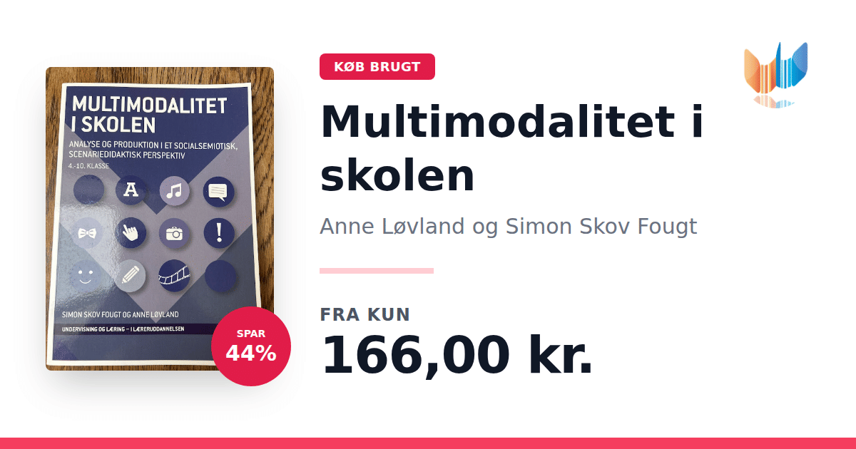Multimodalitet i skolen henvender sig til dansklærere i grundskolen samt undervisere, der arbejder med det nationale modul 4 om multimodale tekster. Bogen introducerer en socialsemiotisk tilgang til multimodalitet, hvor undervisningen forenes med både analytiske og produktive arbejdsmetoder inspireret af praksis uden for skolens rammer. I denne tekst understreges vigtigheden af kontekstafhængighed og de sociale kommunikationssituationers rolle, når man arbejder med multimodale tekster. Eleverne sættes i læringsmiljøer, hvor de gennem skiftevis analyse og produktion udvikler deres forståelse og kompetencer. Bogen rummer et klart begrebsapparat, som anvendes i modelanalyser af både fiktive og ikke-fiktive tekster. Undervejs opfordres læseren til at påtage sig produktive opgaver, der understreger de centrale elementer: Socialsemiotik, Multimodalitet, Modalitet, Redundans, Funktionel specialisering, Affordans, Transformation og Transduktion. Forfattet af Anne Løvland og Simon Skov Fougt, bidrager denne bog med faglig indsigt fra to eksperter på området og giver et solidt grundlag for at arbejde med multimodalitet i skolens praksis.