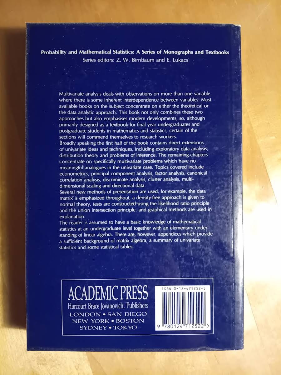 • Multivariate Analysis, Kanti V. Mardia, J. T. Kent, J. M. Bibby, 9780124712522