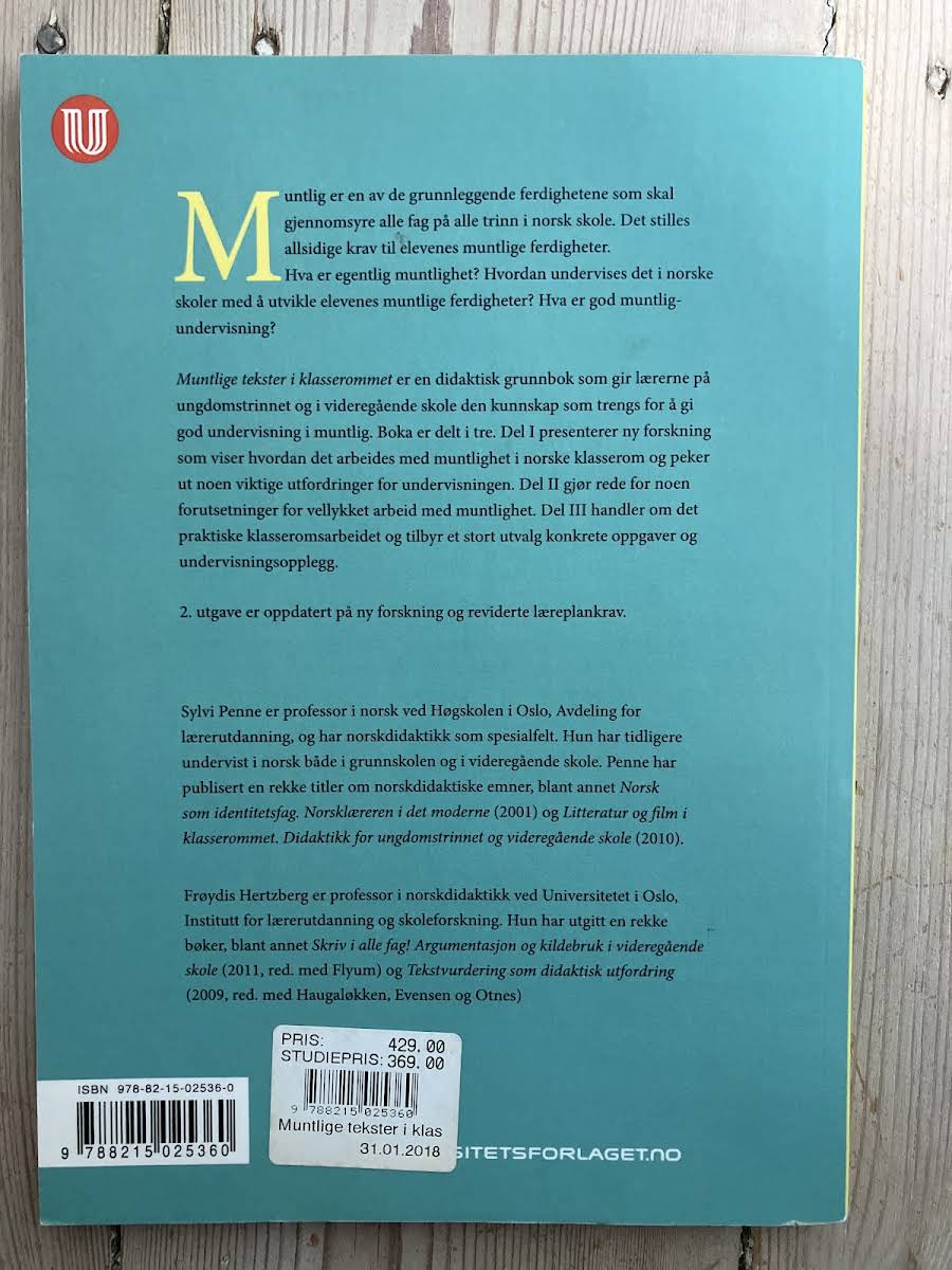 • Muntlige tekster i klasserommet (2. utg.), Frøydis Hertzberg, Sylvi Penne, 9788215025360