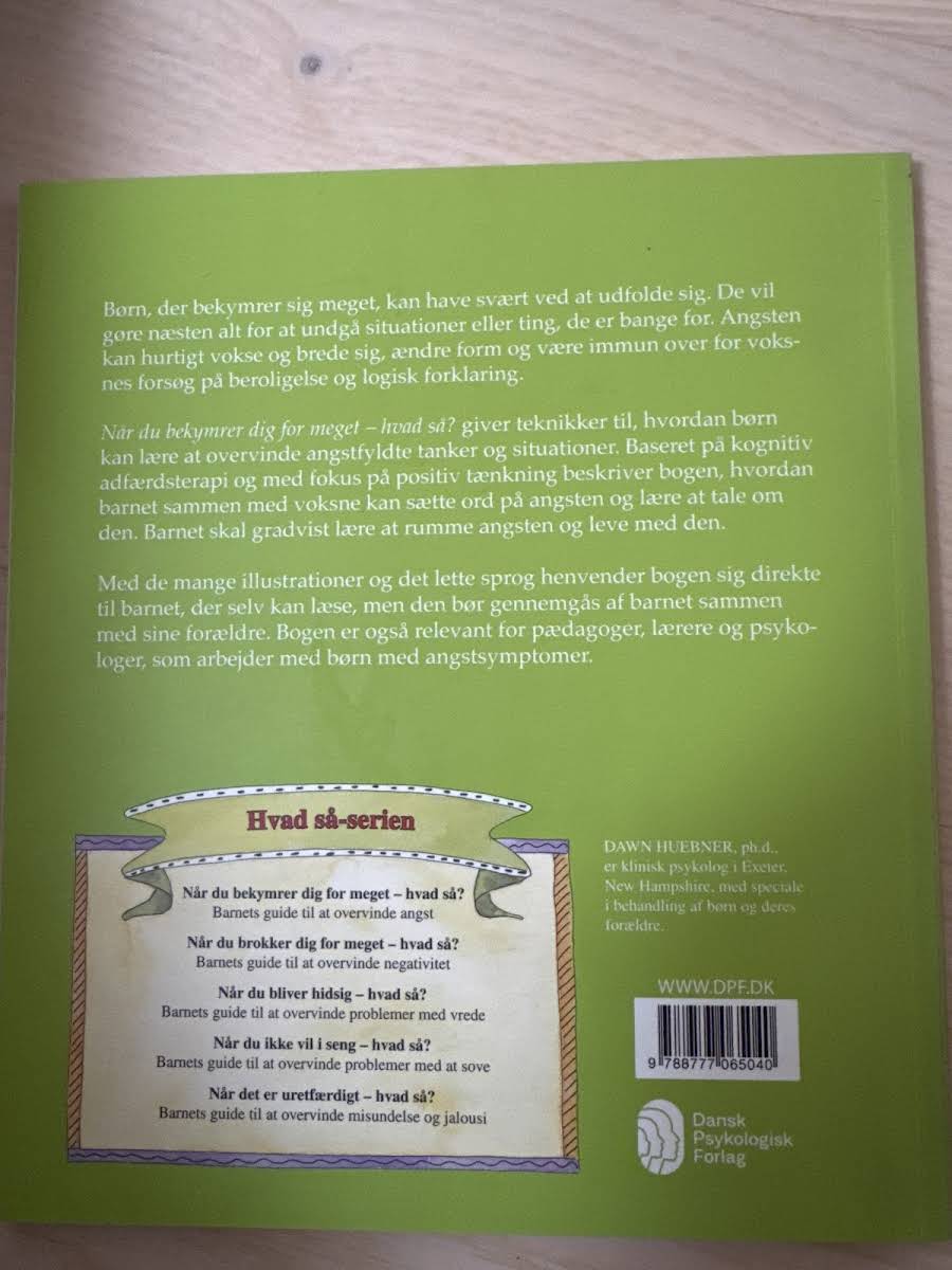 Lige nu kan du købe "Når du bekymrer dig for meget - hvad så?" af Dawn Huebner til kun 50,00 kr. Du sparer hele 72% af nyprisen! Bogen du ser her er brugt, og i perfekt stand. Vi har i øjeblikket kun et enkelt eksemplar til salg af "Når du bekymrer dig for meget - hvad så?", så slå til mens du kan!