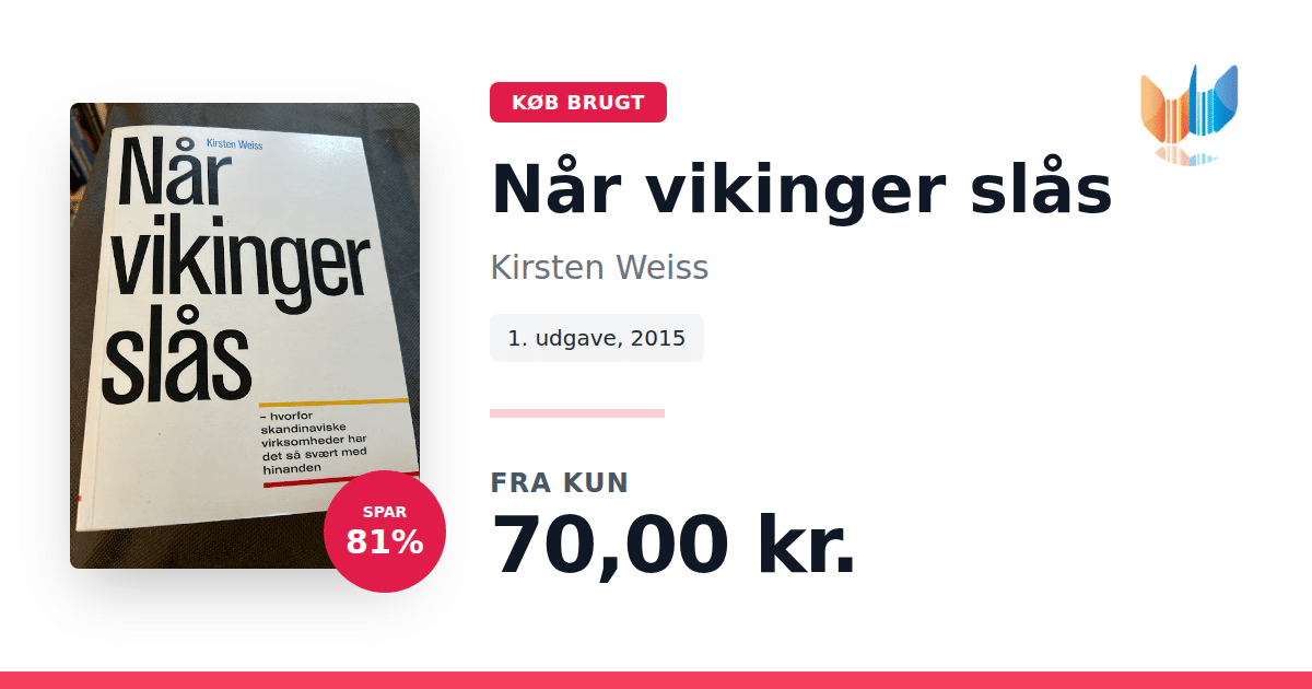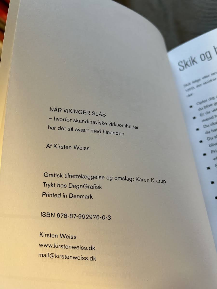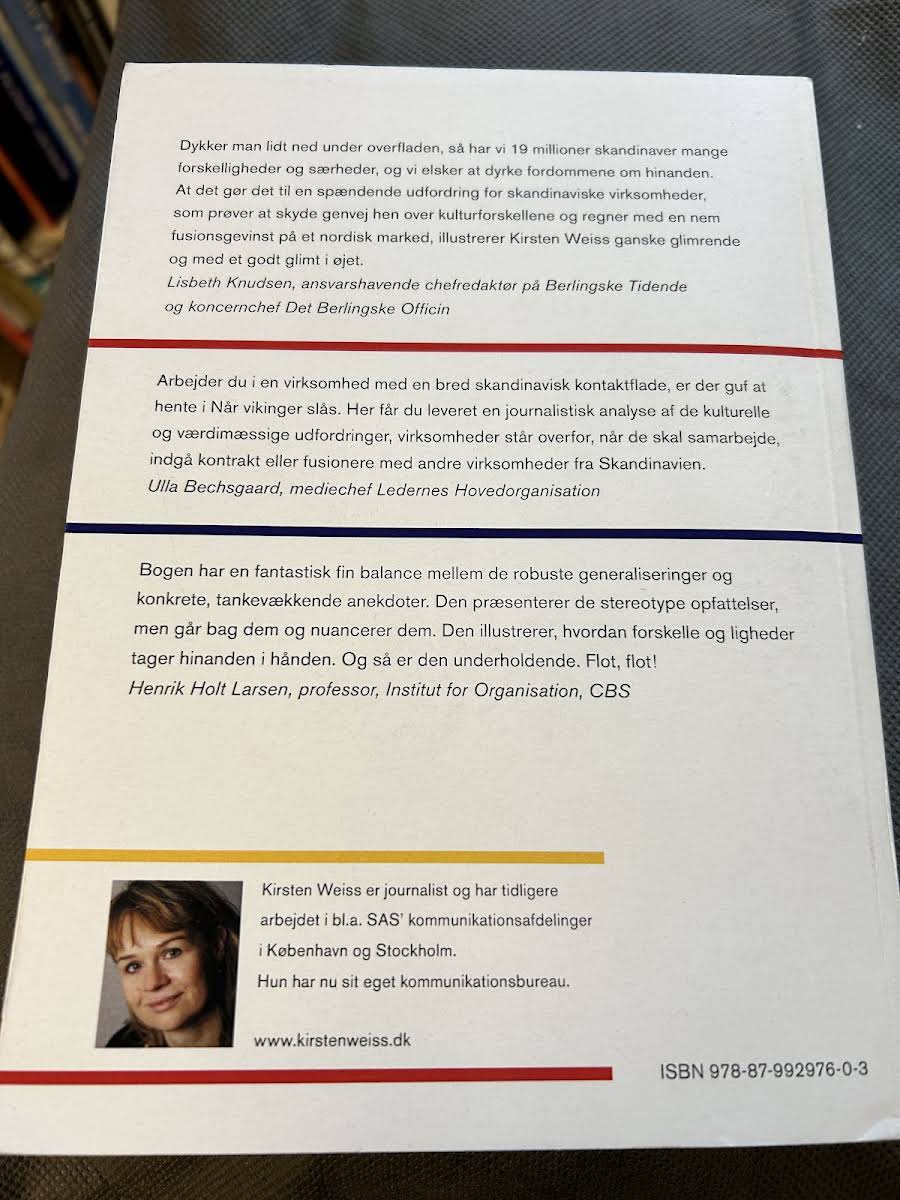 Når vikinger slås er en indsigtfuld bog, der undersøger, hvordan kulturelle og værdimæssige forskelle udfordrer samarbejdet mellem skandinaviske virksomheder. Kirsten Weiss giver et skarpt og nuanceret billede af, hvordan historiske traditioner og identiteter fortsat præger nutidens forretningsrelationer, konkret når virksomheder indgå kontrakter eller fusioner. Gennem en engageret og analytisk tilgang fremhæver bogen netop de interne kampe, som kan opstå, når virksomheder med forskellige baggrunde forsøger at finde fælles fodslag. Dette værk appellerer til både erhvervsfolk og ledere, der ønsker et dybere kendskab til de komplekse relationer, der præger det skandinaviske erhvervsliv.