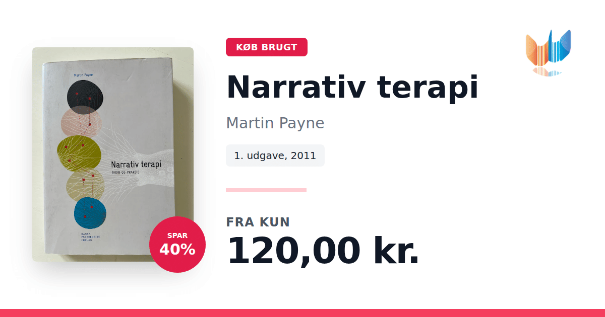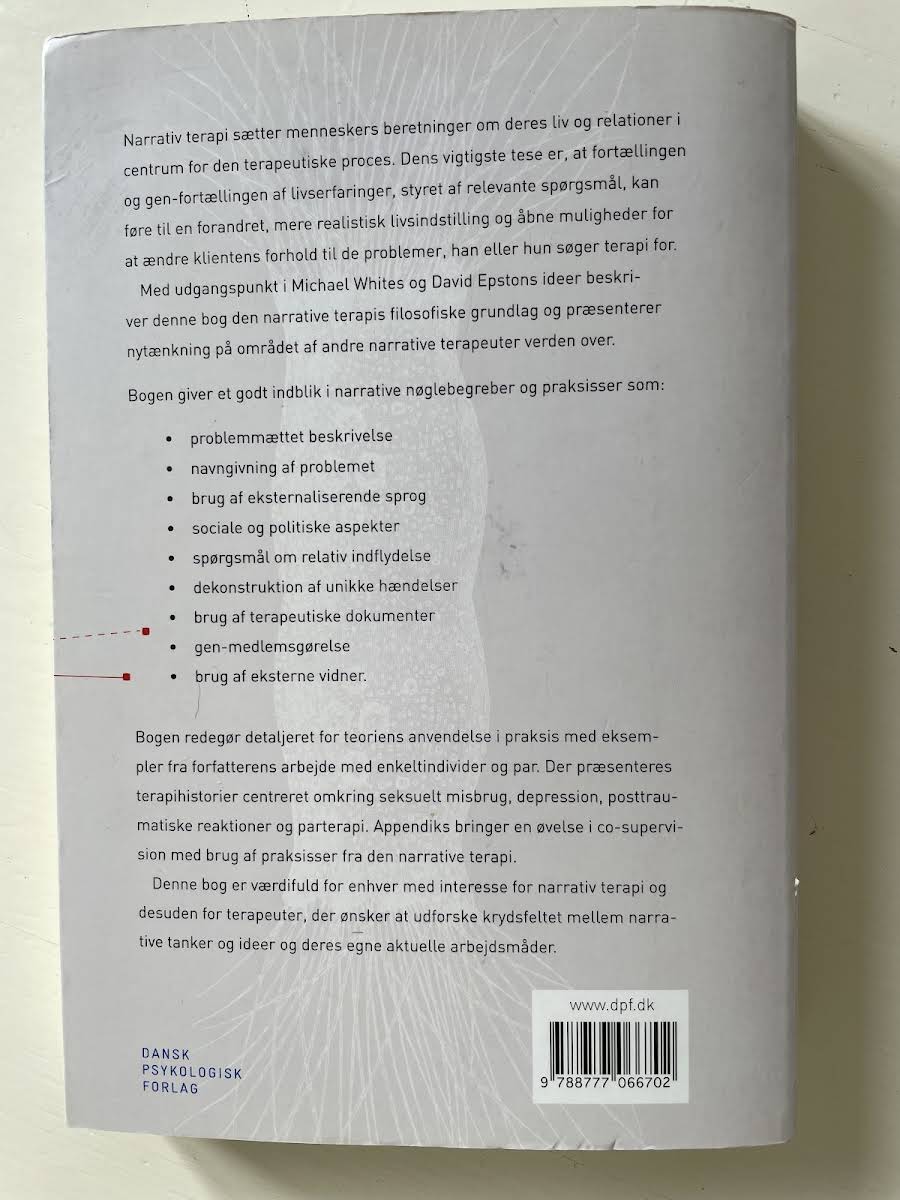 Lige nu kan du købe "Narrativ terapi" af Martin Payne til kun 120,00 kr. Du sparer hele 40% af nyprisen! Bogen du ser her er brugt, og i perfekt stand. Vi har i øjeblikket kun et enkelt eksemplar til salg af "Narrativ terapi", så slå til mens du kan!