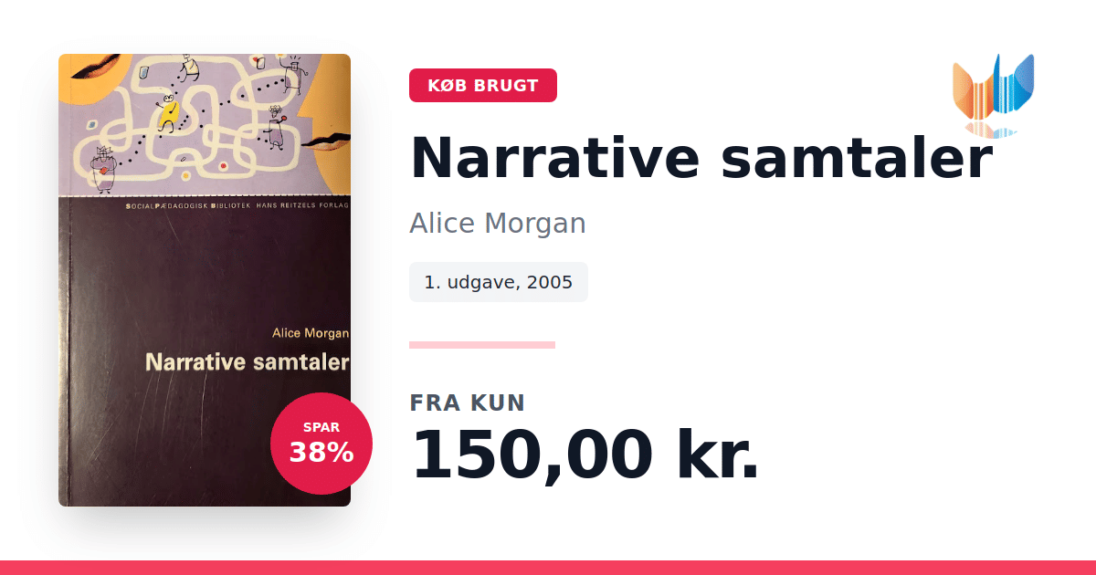 Lige nu kan du købe "Narrative samtaler" af Alice Morgan til kun 150,00 kr. Du sparer hele 38% af nyprisen! Bogen du ser her er brugt, og i god stand. Vi har i øjeblikket 2 eksemplarer til salg af "Narrative samtaler", så husk at se de forskellige udgaver.