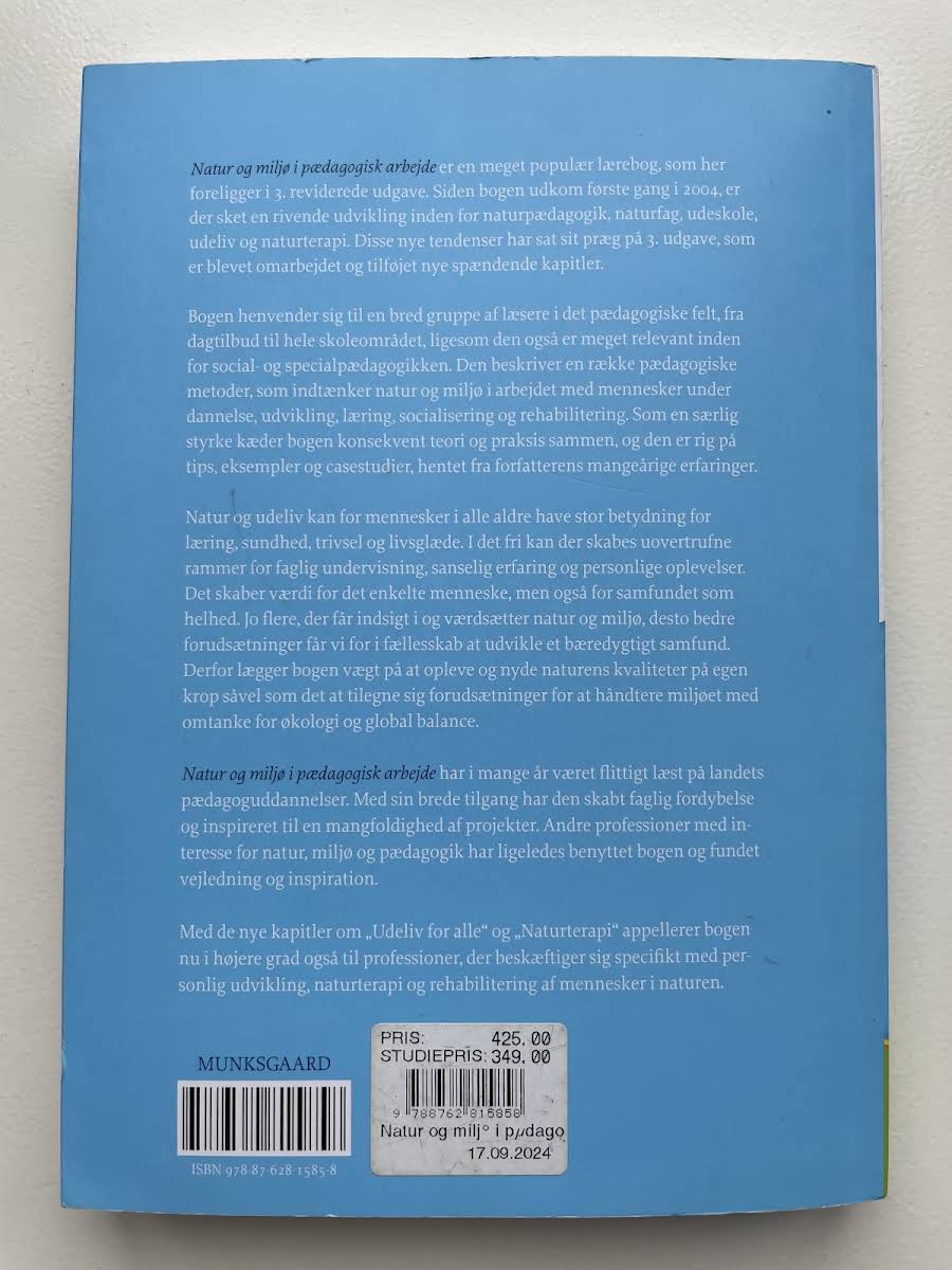"Natur og miljø i pædagogisk arbejde" præsenterer en inspirerende tilgang til, hvordan naturens elementer kan styrke læring, sundhed og trivsel hos mennesker i alle aldre. I den tredje reviderede udgave af bogen er de seneste tendenser inden for naturpædagogik og udeliv integreret med en lang række pædagogiske metoder, der forbinder teori og praksis på en overbevisende måde. Bogen rummer et væld af eksempler, tips og casestudier, der understøtter arbejdet med dannelse, socialisering og personlig udvikling. Med en stærk vægt på naturens sanselige og livsbekræftende kvaliteter opfordrer forfatteren til at udnytte udelivets potentiale til at skabe meningsfulde læringssituationer. Denne opdaterede udgave er et værdifuldt redskab for alle, der arbejder med pædagogik og ønsker at integrere natur og miljø i deres praksis.