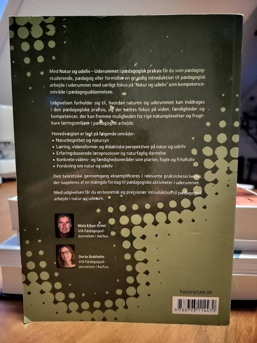 "Natur og udeliv" er en praksisorienteret og teoretisk lærebog, der giver et solidt fundament for, hvordan naturen kan integreres i den pædagogiske praksis. Bogen byder på konkret vejledning til udvikling af naturvidenskabeligt funderede forløb, der understøtter opbygningen af vigtige kompetencer og færdigheder i arbejdet med børn og unge. Med udgangspunkt i didaktiske overvejelser og pædagogiske teorier introducerer forfatterne Dorte Stokholm og Niels Ejbye-Ernst både naturbegrebet og naturfaglig dannelse. Læseren præsenteres for relevante eksempler, herunder udvalgte forskningsprojekter, der belyser naturens betydning for livskvaliteten, og bogen henvender sig til pædagoger, pædagogstuderende samt formidlere med interesse for natur- og udelivspædagogik.