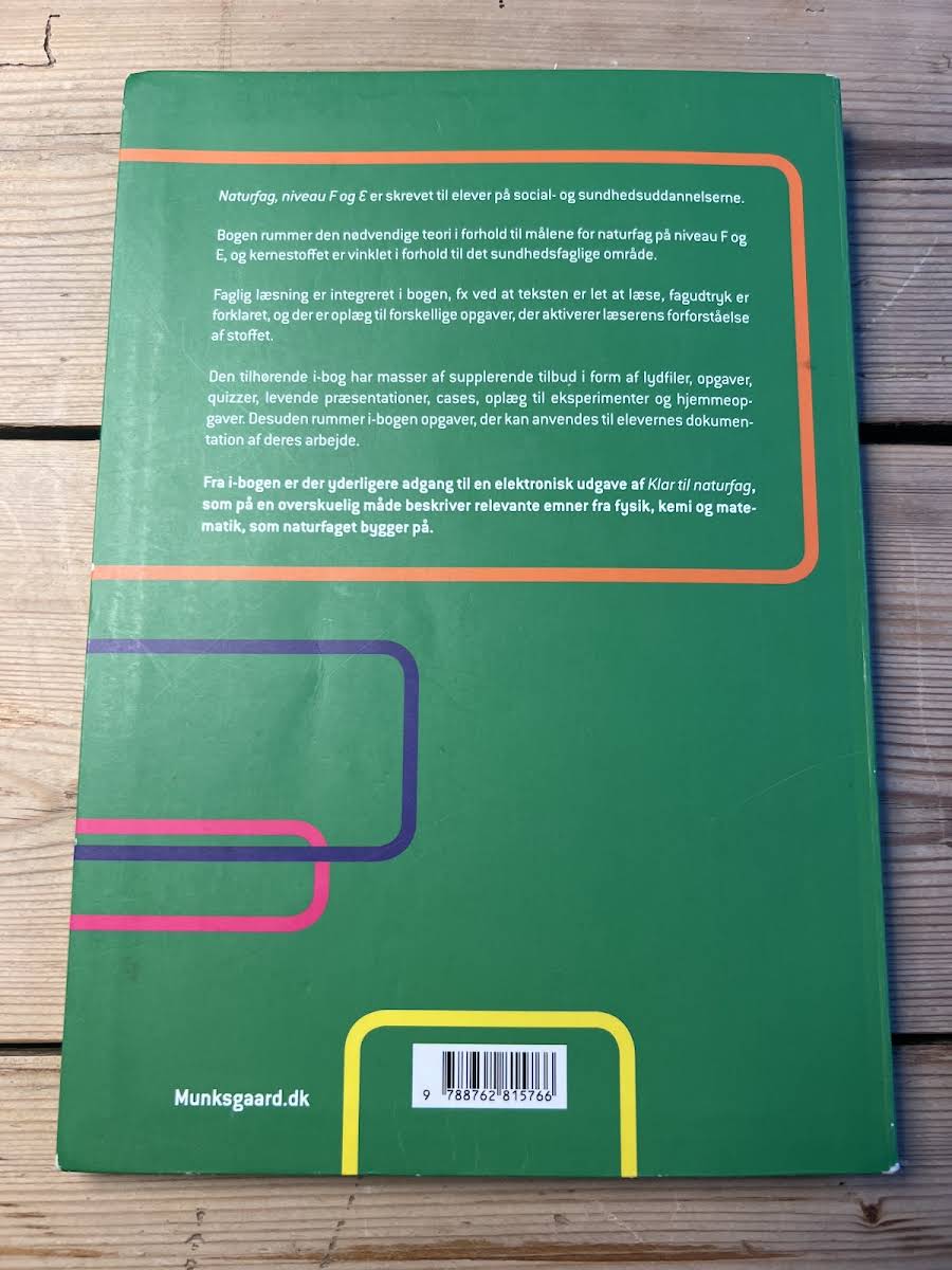 Naturfag. Niveau F og E er en grundbog for elever, der arbejder med naturfag på netop disse niveauer. Bogen henvender sig til alle, der ønsker en solid forståelse af naturfaglige sammenhænge og principper. Den præsenterer den nødvendige teori og det centrale kernestof på en overskuelig og tilgængelig måde. Teksten er struktureret i klare afsnit, hvor fagudtryk forklares, så læseren gradvist opbygger præcis viden. Hvert kapitel indeholder opgaver og reflektionsspørgsmål, der aktiverer forforståelse og styrker evnen til at anvende begreber i praksis. Øvelserne er sammensat, så teori og praksis går hånd i hånd. Med 160 sider i robust hardcover er denne 1. udgave fra 2015 en pålidelig kilde til naturfagsundervisning. Forfatteren Ole Bjerglund Pedersen sikrer en faglig præcis tilgang, der lever op til målene for niveau F og E.