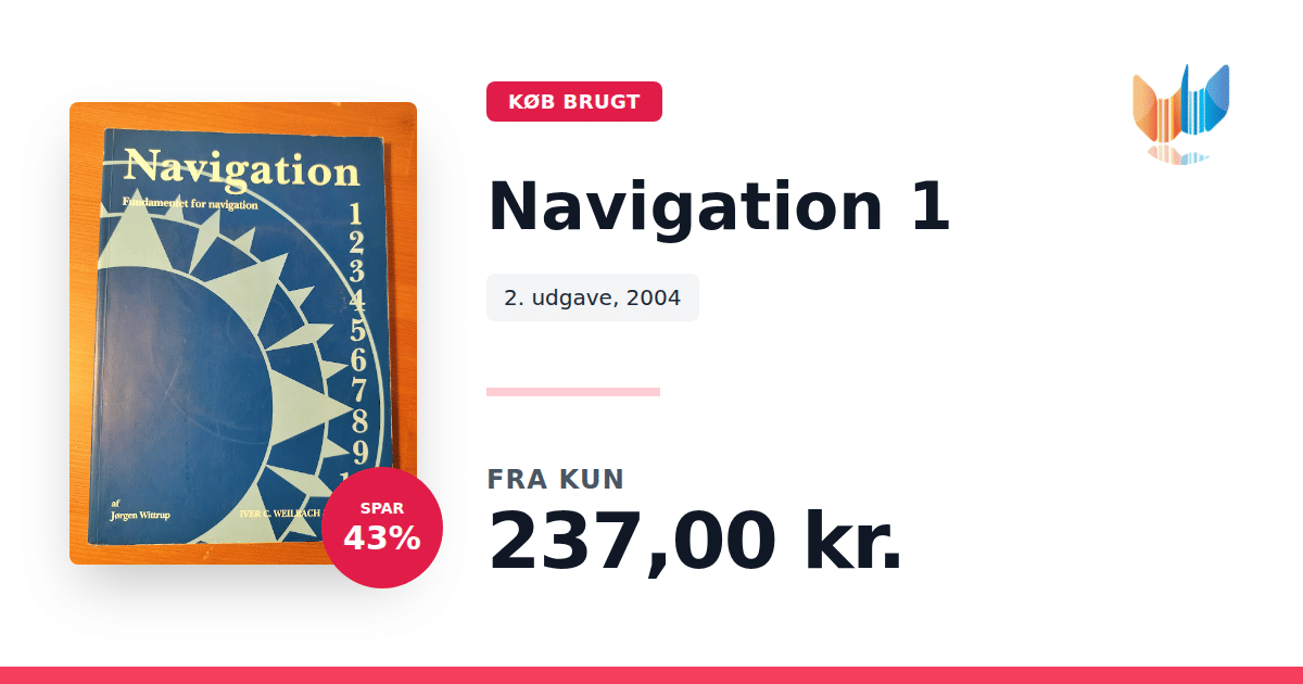 Lige nu kan du købe "Navigation 1" til kun 237,00 kr. Du sparer hele 43% af nyprisen! Bogen du ser her er brugt, og i perfekt stand. Vi har i øjeblikket kun et enkelt eksemplar til salg af "Navigation 1", så slå til mens du kan!