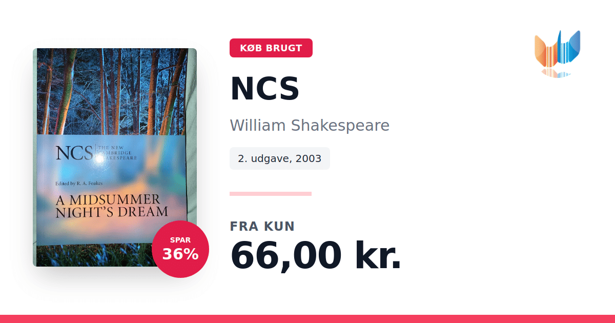 Lige nu kan du købe "NCS" af William Shakespeare til kun 66,00 kr. Du sparer hele 36% af nyprisen! Bogen du ser her er brugt, og i perfekt stand. Vi har i øjeblikket kun et enkelt eksemplar til salg af "NCS", så slå til mens du kan!