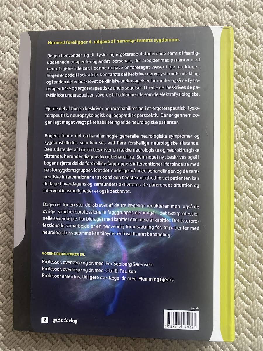 "Nervesystemets sygdomme" i 4. udgave, skrevet af Flemming Gjerris, Olaf B. Paulsen og redaktøren Per Soelberg Sørensen, tilbyder en grundig introduktion til de mange sygdomme, der kan påvirke nervesystemet. Bogen retter sig mod fysioterapeuter, ergoterapeuter og andet neurologisk personale, som med denne viden kan tilbyde en målrettet og effektiv indsats overfor patienterne. I en tid, hvor antallet af neurologiske patienter stiger, giver bogen et solidt overblik over de essentielle behandlingsprincipper og rehabiliteringsstrategier. De praktiske tilgange, der præsenteres i denne 552-siders paperback, understøtter faggrupper i deres bestræbelser på at hjælpe patienterne med at opnå en aktiv deltagelse i hverdagen og samfundslivet. Med fokus på tværfaglige interventioner og den nyeste viden inden for rehabilitering, er "Nervesystemets sygdomme" et uvurderligt redskab for alle, der arbejder med neurologiske lidelser og ønsker at forbedre livskvaliteten for deres patienter.