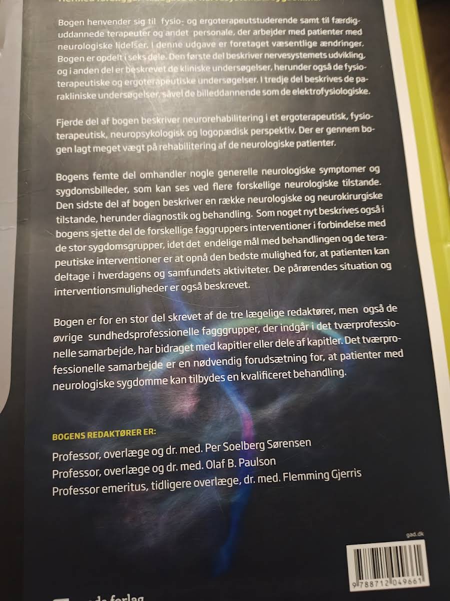 "Nervesystemets sygdomme" i 4. udgave, skrevet af Flemming Gjerris, Olaf B. Paulsen og redaktøren Per Soelberg Sørensen, tilbyder en grundig introduktion til de mange sygdomme, der kan påvirke nervesystemet. Bogen retter sig mod fysioterapeuter, ergoterapeuter og andet neurologisk personale, som med denne viden kan tilbyde en målrettet og effektiv indsats overfor patienterne. I en tid, hvor antallet af neurologiske patienter stiger, giver bogen et solidt overblik over de essentielle behandlingsprincipper og rehabiliteringsstrategier. De praktiske tilgange, der præsenteres i denne 552-siders paperback, understøtter faggrupper i deres bestræbelser på at hjælpe patienterne med at opnå en aktiv deltagelse i hverdagen og samfundslivet. Med fokus på tværfaglige interventioner og den nyeste viden inden for rehabilitering, er "Nervesystemets sygdomme" et uvurderligt redskab for alle, der arbejder med neurologiske lidelser og ønsker at forbedre livskvaliteten for deres patienter.