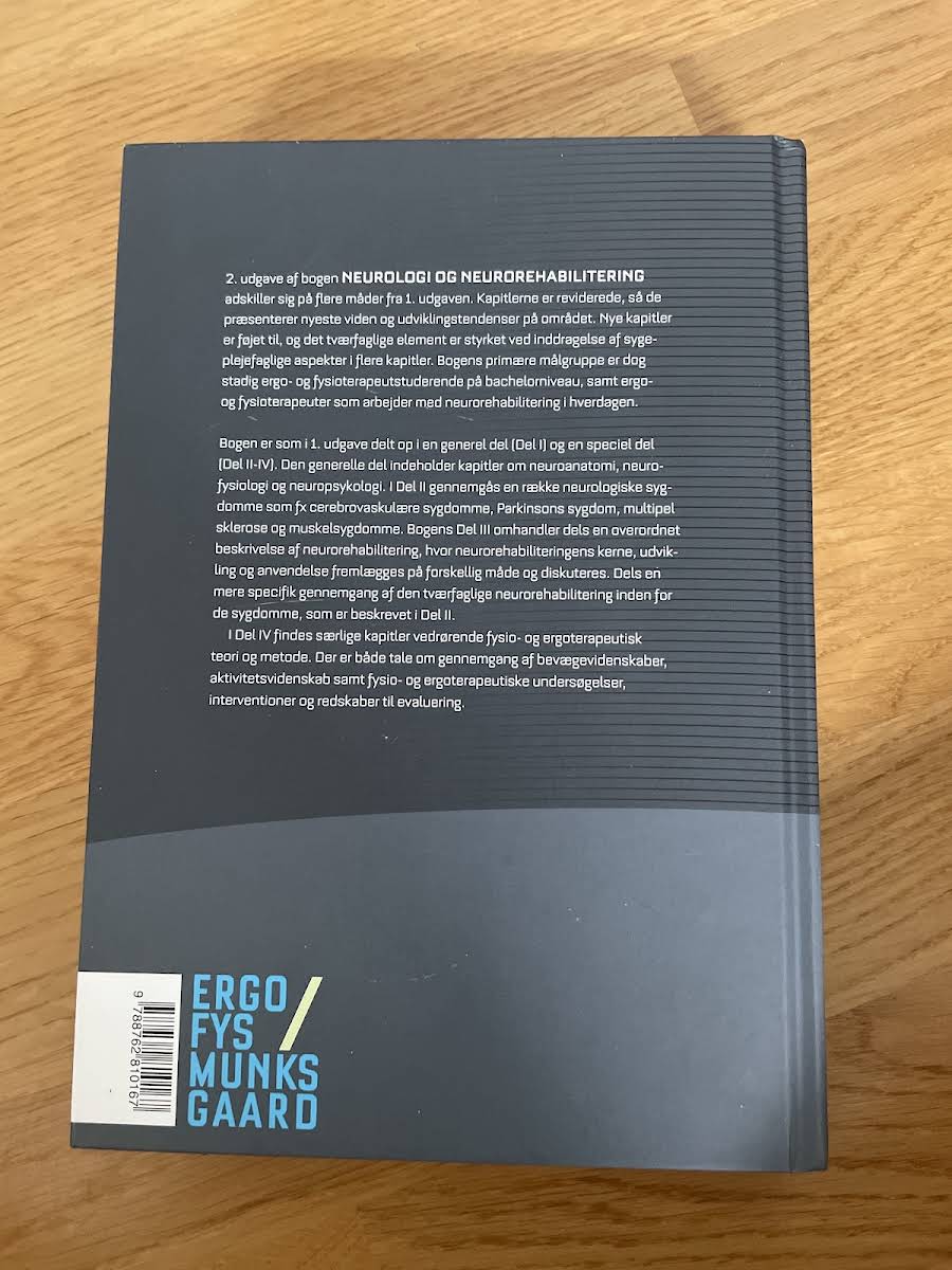 I den 2. udgave af Neurologi og neurorehabilitering, udgivet i 2013 af Munksgaard, præsenteres den nyeste viden og de seneste tendenser inden for området. Bogen er opdateret for at imødekomme den hurtige udvikling, og der er indarbejdet et udvidet sygeplejefagligt perspektiv, som styrker den tværfaglige tilgang. Med et solidt fagligt fundament henvender bogen sig primært til studerende på ergo- og fysioterapibacheloruddannelser samt til fagfolk, der arbejder med neurorehabilitering i praksis. Her tilbydes læseren en dybdegående introduktion til neuroanatomi, neurofysiologi og neuropsykologi efterfulgt af en detaljeret gennemgang af en række neurologiske sygdomme som fx cerebrovaskulære sygdomme, Parkinsons sygdom, Multipel sklerose og muskelsygdomme. Bogen formidler både generelle og specifikke aspekter af neurorehabilitering og byder på en række teoretiske og praktiske indsigter. Indholdet er struktureret således, at læseren i første del får et bredt overblik over de neurologiske grundprincipper, mens den efterfølgende del dykker ned i sygdomsbilleder og tværfaglige behandlingsstrategier. Denne udgave er derfor en uundværlig ressource for alle, der ønsker at holde sig ajour med den nyeste viden og praksis inden for neurologi og neurorehabilitering.