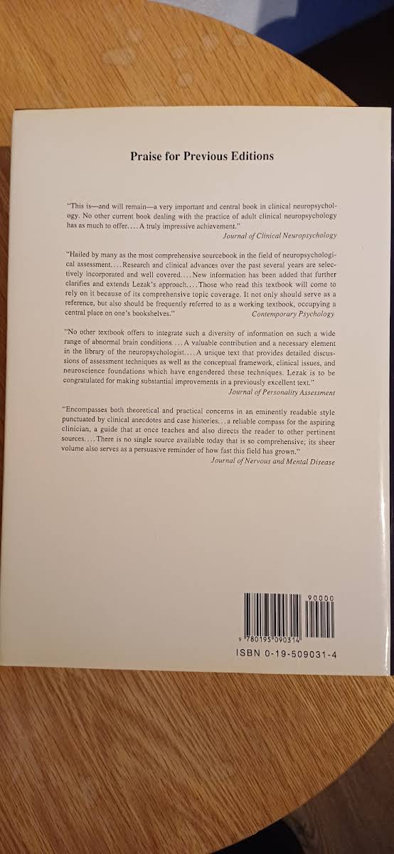 • Neuropsychological Assessment, Muriel Deutsch Lezak, 9780195090314