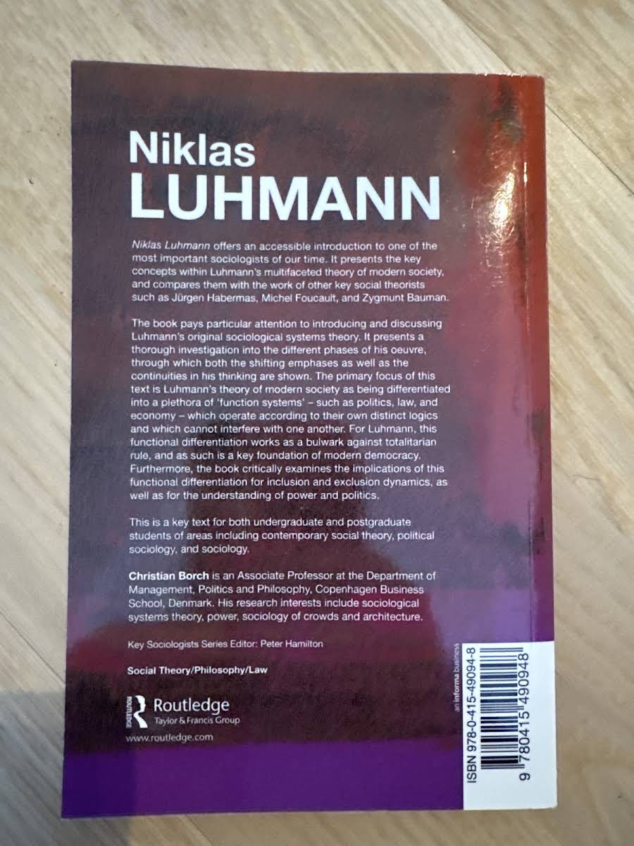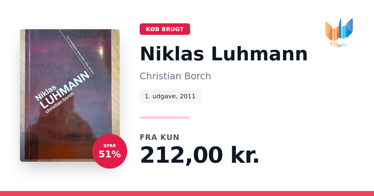 Lige nu kan du købe "Niklas Luhmann" af Christian Borch til kun 212,00 kr. Du sparer hele 51% af nyprisen! Bogen du ser her er brugt, og i god stand. Vi har i øjeblikket kun et enkelt eksemplar til salg af "Niklas Luhmann", så slå til mens du kan!