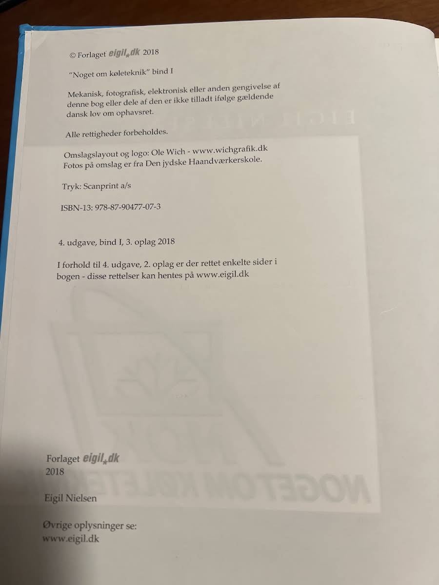 Noget om køleteknik, bind 1 & 2, er en central lærebog og opslagsværk for alle, der arbejder med eller studerer køleteknik. Bogen byder på et solidt overblik over emnerne og fungerer som et vigtigt redskab både i uddannelsessammenhænge og i den praktiske faglige hverdag. Bogen anvendes blandt andet på køleteknikeruddannelsen og på de fleste maskinmesterskoler. I denne 4. udgave er det stort set et genoptryk af den forrige udgave, men med rettede enkelte fejl og et opdateret afsnit om lovgivningen, tilpasset de seneste ændringer.