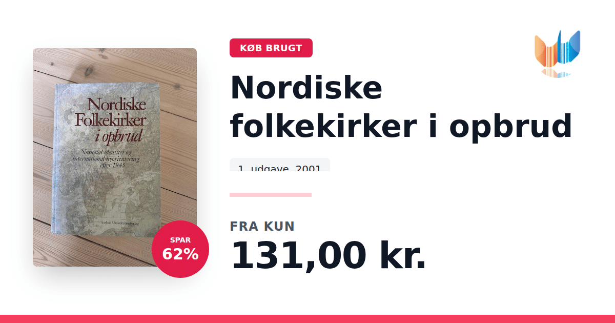 Lige nu kan du købe "Nordiske folkekirker i opbrud" til kun 131,00 kr. Du sparer hele 62% af nyprisen! Bogen du ser her er brugt, og i perfekt stand. Vi har i øjeblikket kun et enkelt eksemplar til salg af "Nordiske folkekirker i opbrud", så slå til mens du kan!