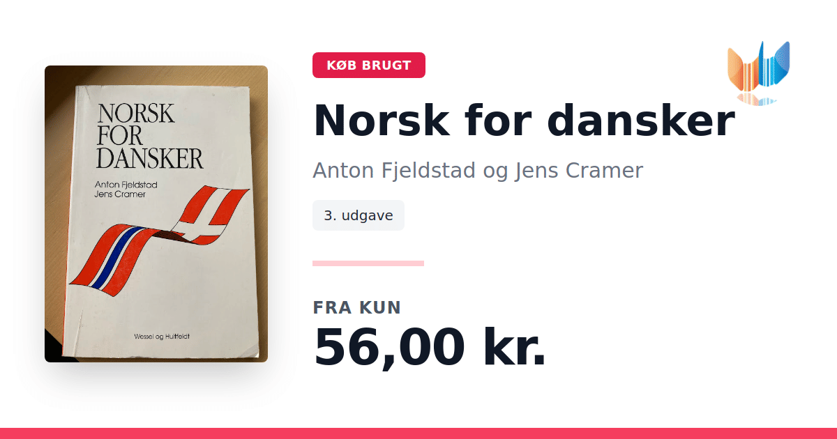 Lige nu kan du købe "Norsk for dansker" af Anton Fjeldstad og Jens Cramer til kun 56,00 kr. Bogen du ser her er brugt, og i perfekt stand. Vi har i øjeblikket kun et enkelt eksemplar til salg af "Norsk for dansker", så slå til mens du kan!