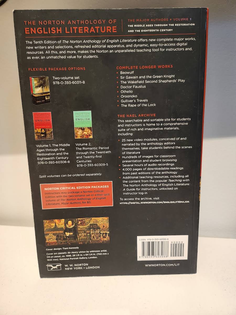 • Norton Anthology of English Literature: the Major Authors, 10th Edition (Volume A), Stephen Greenblatt, 9780393603118