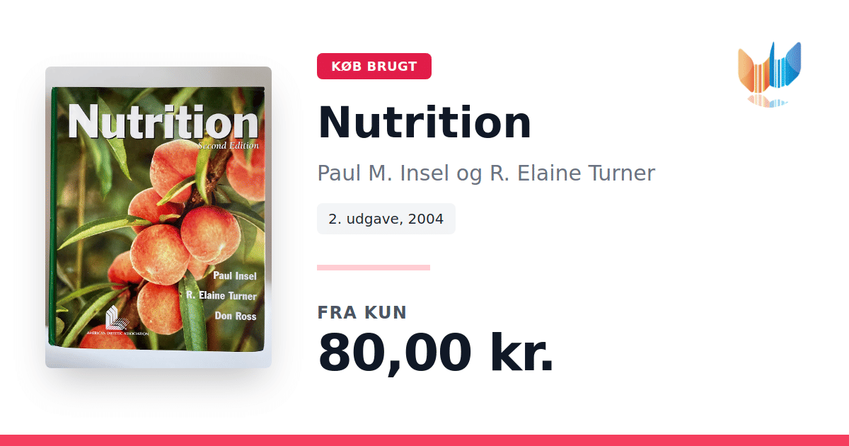 Nutrition af Paul M. Insel, R. Elaine Turner og Don Ross præsenterer en adfærdsbaseret tilgang til ernæringsstudier, der udfordrer læseren til aktivt at engagere sig i stoffet frem for blot at memorere fakta. Forfatterne kombinerer dybdegående videnskabelig indsigt med praktiske strategier for adfærdsændring, så teorierne omsættes til konkrete handlinger i hverdagen. Stoffet er nøje afbalanceret mellem ernæringsvidenskabens grundlag og de psykologiske aspekter af motivation og livsstilsændringer. Gennem illustrative eksempler og refleksionsøvelser skabes en dynamisk læringsoplevelse, hvor teori og praksis går hånd i hånd. Udgivet i 2004 som paperback af Jones & Bartlett Learning, omfatter bogen 986 sider skrevet på engelsk.