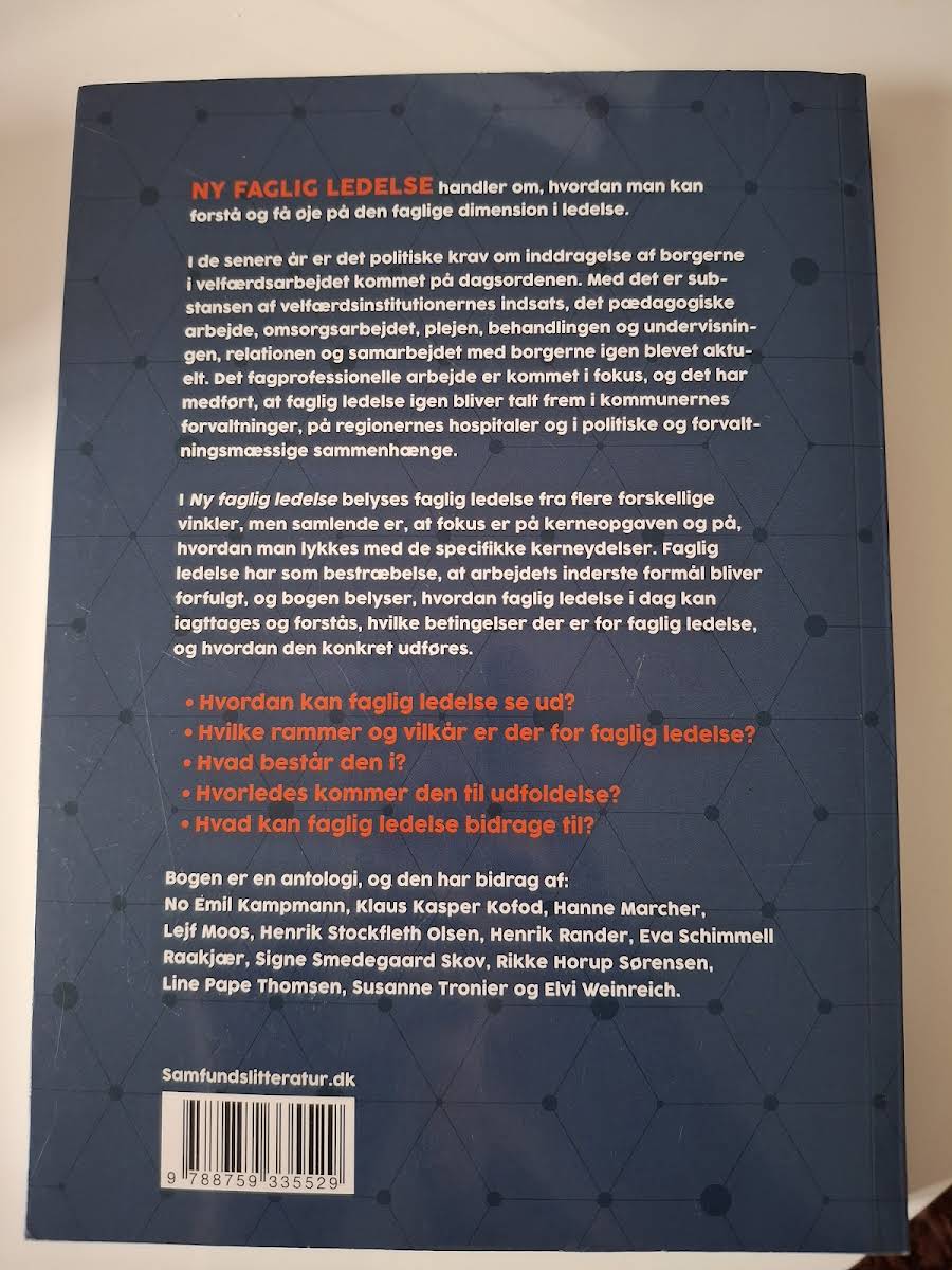 Ny faglig ledelse giver et grundigt indblik i, hvordan den faglige dimension i ledelse kan forstås og omsættes til praksis. Bogen sætter fokus på, hvordan de politiske krav om borgerinddragelse har medført et fornyet blik på det pædagogiske arbejde, omsorg, pleje, behandling og undervisning. Det er et centralt emne, der i stigende grad vækker opmærksomhed i både kommunale forvaltninger og hospitaler. Med en alsidig tilgang præsenterer antologien, hvordan ledelsens kerneopgave kan forfølges gennem en vedholdende indsats for at bevare og styrke de faglige metoder og værdier. Vigtige spørgsmål som: Hvordan ser faglig ledelse ud? Hvilke rammer og vilkår skaber de bedste betingelser for at udfolde den? får plads til refleksion og debate. Bogen byder på bidrag fra en række prominente stemmer inden for området og tilbyder dermed læseren flere perspektiver på, hvad der skal til for at gennemføre en succesfuld og meningsfuld faglig ledelse i dagens komplekse arbejdslandskab.
