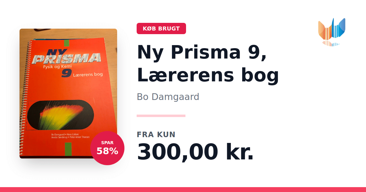 Lige nu kan du købe "Ny Prisma 9, Lærerens bog" af Bo Damgaard til kun 300,00 kr. Du sparer hele 58% af nyprisen! Bogen du ser her er brugt, og i god stand. Vi har i øjeblikket kun et enkelt eksemplar til salg af "Ny Prisma 9, Lærerens bog", så slå til mens du kan!