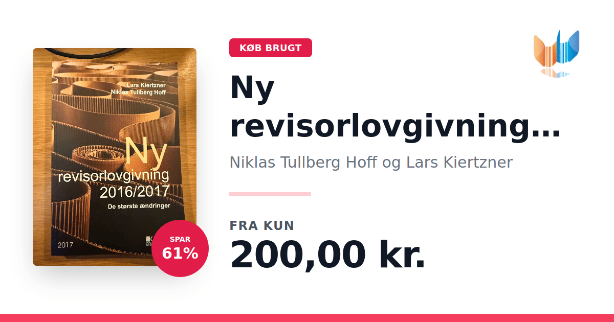 Lige nu kan du købe "Ny revisorlovgivning 2016/2017" af Niklas Tullberg Hoff og Lars Kiertzner til kun 200,00 kr. Du sparer hele 61% af nyprisen! Bogen du ser her er brugt, og i god stand. Vi har i øjeblikket kun et enkelt eksemplar til salg af "Ny revisorlovgivning 2016/2017", så slå til mens du kan!