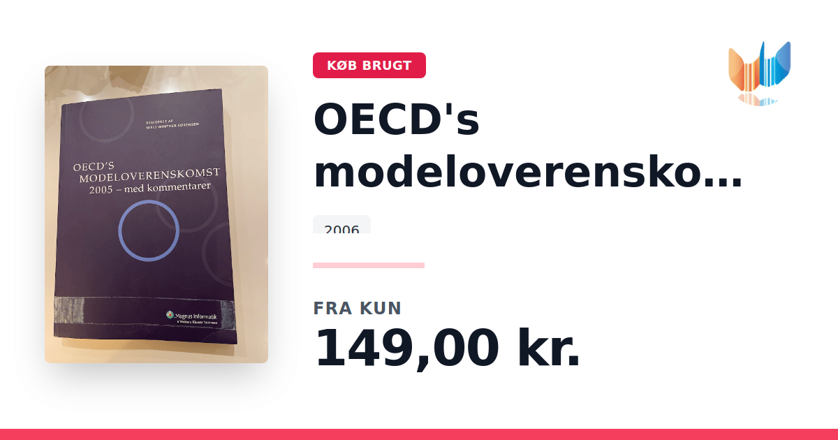 Lige nu kan du købe "OECD's modeloverenskomst 2005" til kun 149,00 kr. Bogen du ser her er brugt, og i god stand. Vi har i øjeblikket kun et enkelt eksemplar til salg af "OECD's modeloverenskomst 2005", så slå til mens du kan!