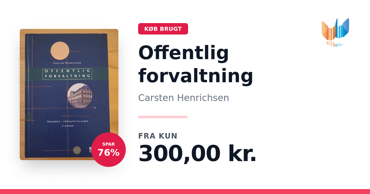 Lige nu kan du købe "Offentlig forvaltning" af Carsten Henrichsen til kun 300,00 kr. Du sparer hele 76% af nyprisen! Bogen du ser her er brugt, og i god stand. Vi har i øjeblikket kun et enkelt eksemplar til salg af "Offentlig forvaltning", så slå til mens du kan!