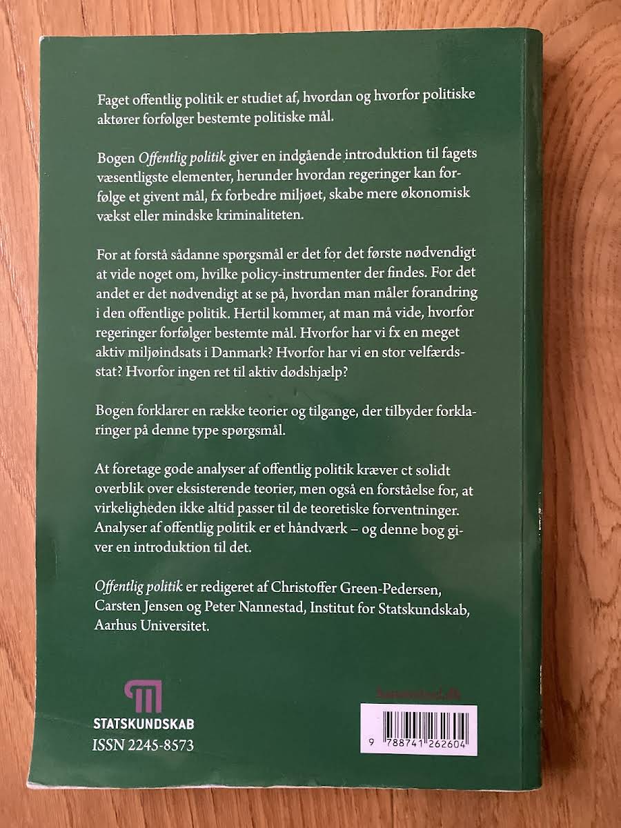 Offentlig politik beskriver, hvordan politiske aktører udformer og forfølger specifikke politiske mål gennem en varieret palette af policy-instrumenter. Bogen giver en grundig introduktion til centrale emner, der spænder fra miljømæssige strategier og økonomisk vækst til bekæmpelse af kriminalitet. Gennem en række teorier og praktiske eksempler oplyser værket om, hvordan man måler og analyserer forandringer i den offentlige politik. Læseren præsenteres for både de fastlagte modeller og de uforudsigelige aspekter, der kendetegner den politiske virkelighed. Denne 2. udgave fra 2015 tilbyder et indsigtsfuldt redskab til studerende og praktikere, der ønsker at opnå en dybere forståelse for, hvordan og hvorfor regeringer vælger specifikke politiske veje. Med et solidt teoretisk fundament og praktiske analyser er bogen en værdifuld ressource inden for faget offentlig politik.