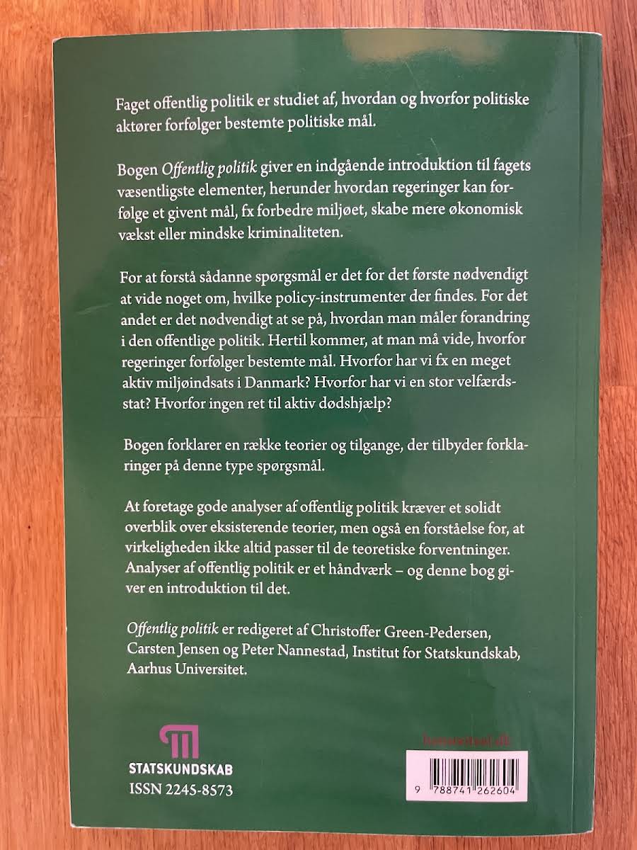 Offentlig politik beskriver, hvordan politiske aktører udformer og forfølger specifikke politiske mål gennem en varieret palette af policy-instrumenter. Bogen giver en grundig introduktion til centrale emner, der spænder fra miljømæssige strategier og økonomisk vækst til bekæmpelse af kriminalitet. Gennem en række teorier og praktiske eksempler oplyser værket om, hvordan man måler og analyserer forandringer i den offentlige politik. Læseren præsenteres for både de fastlagte modeller og de uforudsigelige aspekter, der kendetegner den politiske virkelighed. Denne 2. udgave fra 2015 tilbyder et indsigtsfuldt redskab til studerende og praktikere, der ønsker at opnå en dybere forståelse for, hvordan og hvorfor regeringer vælger specifikke politiske veje. Med et solidt teoretisk fundament og praktiske analyser er bogen en værdifuld ressource inden for faget offentlig politik.