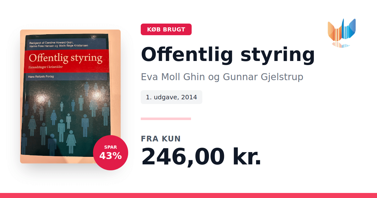 Offentlig styring belyser, hvordan den offentlige sektor organiseres og ledes i en tid med store samfundsmæssige udfordringer. Forfatterne – Eva Moll Ghin, Gunnar Gjelstrup, Hanne Foss Hansen, Caroline Howard Grøn og Mads Kristiansen – fremhæver, at den måde, vores institutioner og infrastrukturer administreres på, har direkte betydning for både velfærdsydelser og de økonomiske byrder, der pålægges borgerne. Bogen peger på, at effektiv offentlig styring er nødvendig for at sikre, at vigtige opgaver som pasning af børn, vedligeholdelse af veje og kloaker samt andre fundamentale ydelser leveres under foranderlige forhold som globalisering og demografiske ændringer. Med en grundig analyse af styringsprincipper og organisatoriske udfordringer er Offentlig styring et vigtigt værktøj for alle, som arbejder med eller studerer offentlig ledelse og forvaltning.