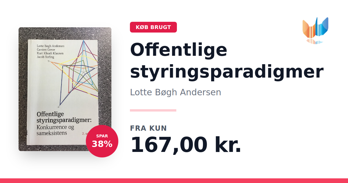 Lige nu kan du købe "Offentlige styringsparadigmer" af Lotte Bøgh Andersen til kun 167,00 kr. Du sparer hele 38% af nyprisen! Bogen du ser her er brugt, og i perfekt stand. Vi har i øjeblikket 5 eksemplarer til salg af "Offentlige styringsparadigmer", så husk at se de forskellige udgaver.